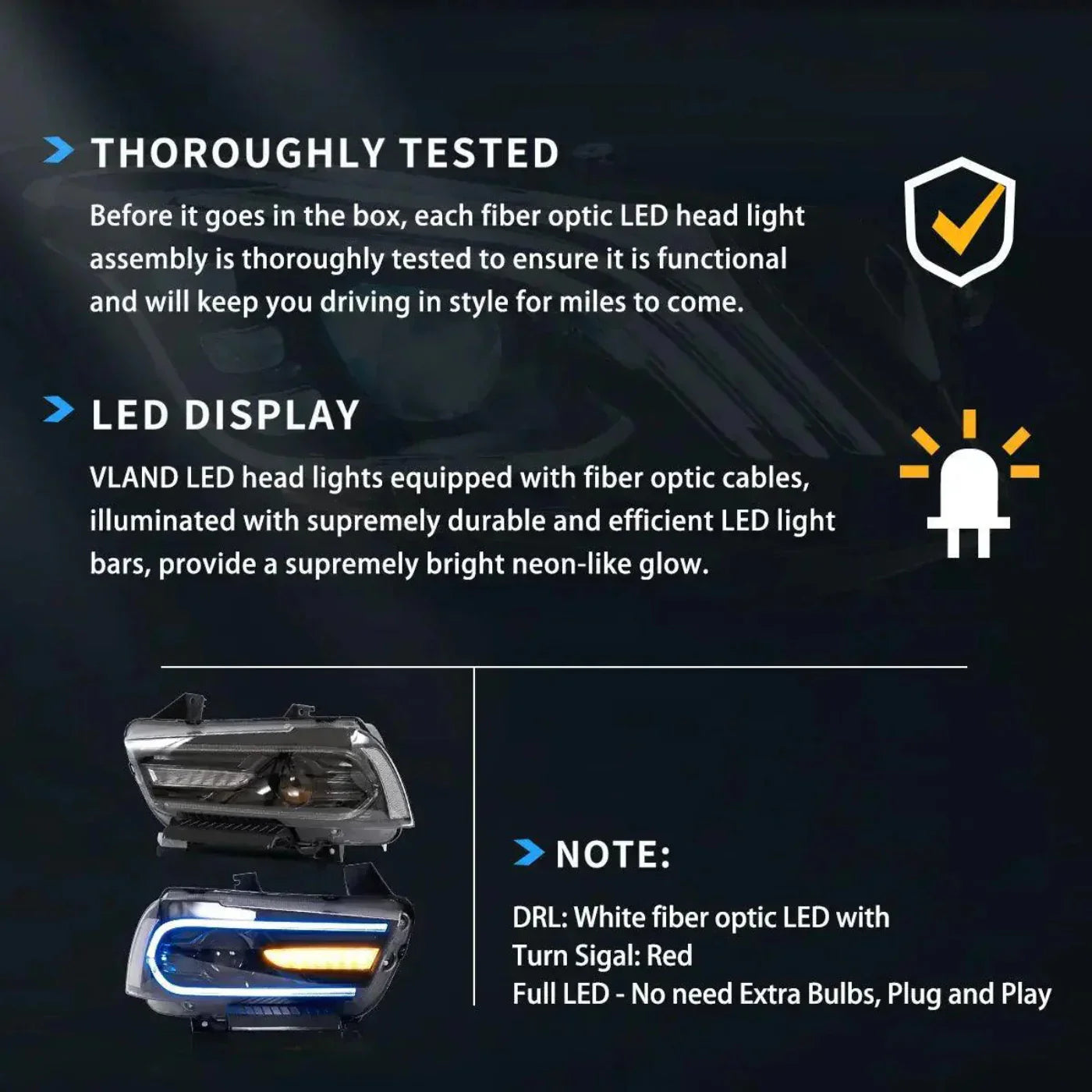 Stylish Black Housing: The black housing offers a modern, aggressive look that complements the sleek design of your Dodge Charger.
