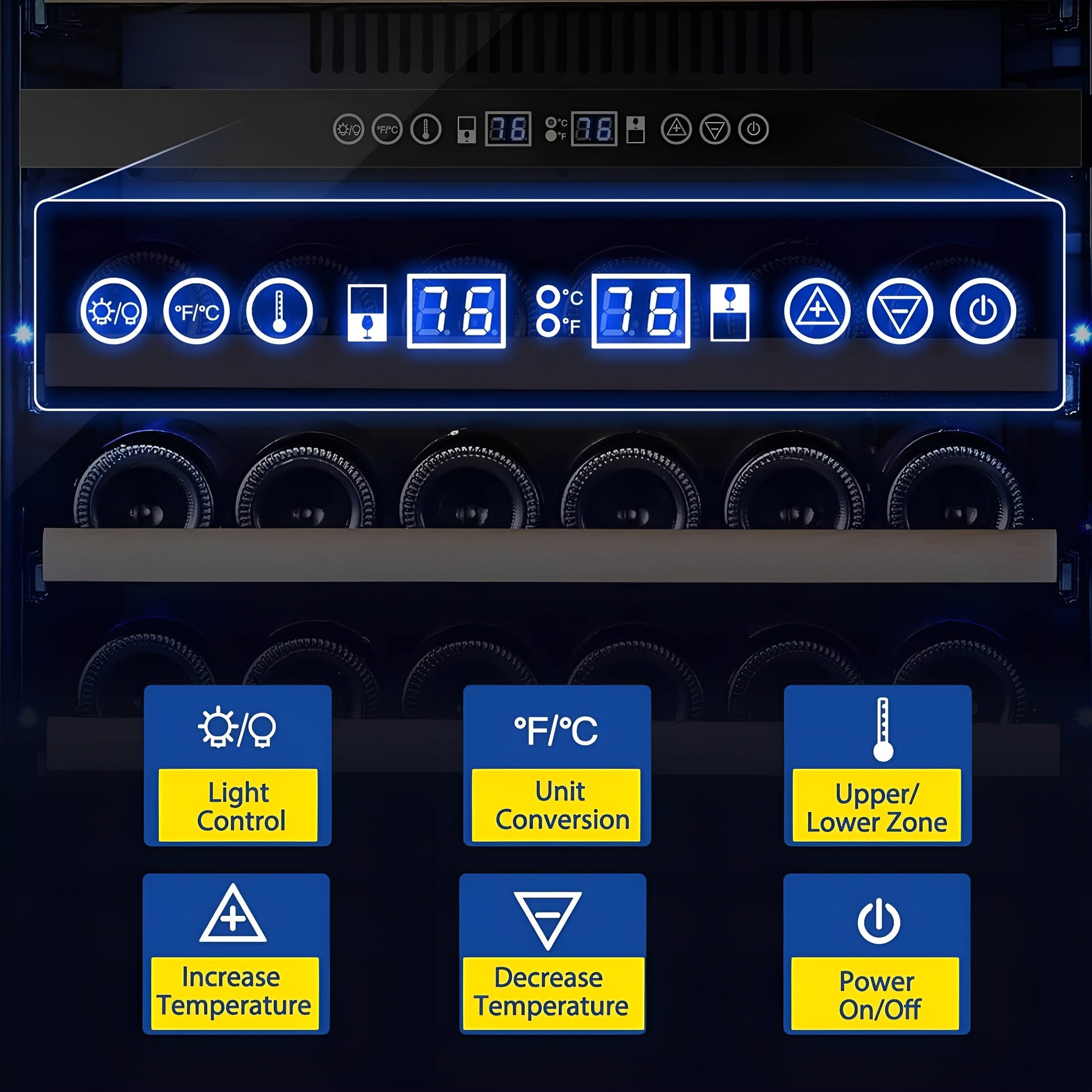 Dual-Zone Precision Cooling – Features independent temperature controls for each zone, allowing you to store reds and whites at their optimal temperatures (41°F–54°F for whites, 54°F–68°F for reds).