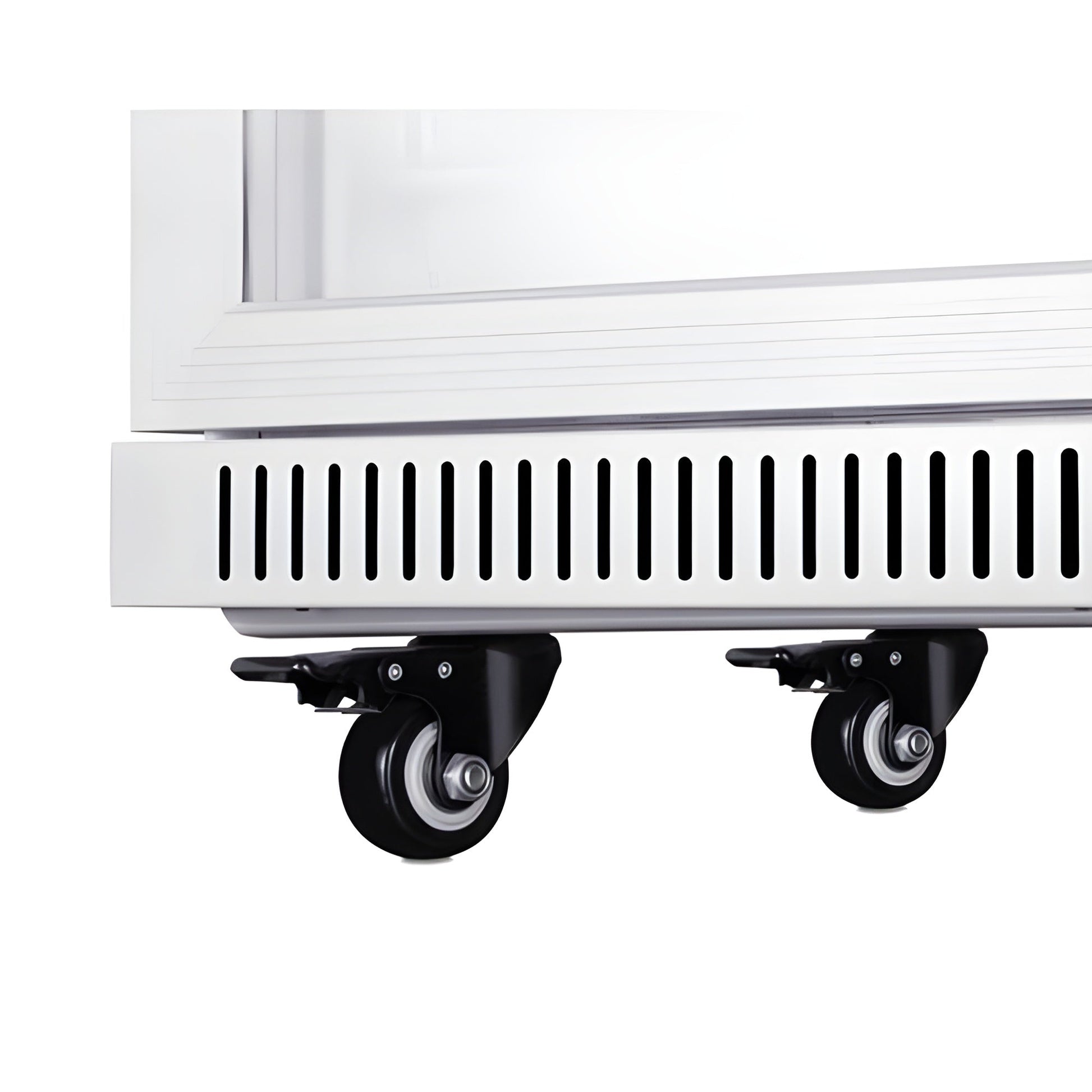 A: Digital thermostat, high/low temperature alarms, LED lighting, factory-installed lock, and self-closing door for security and reliable performance.