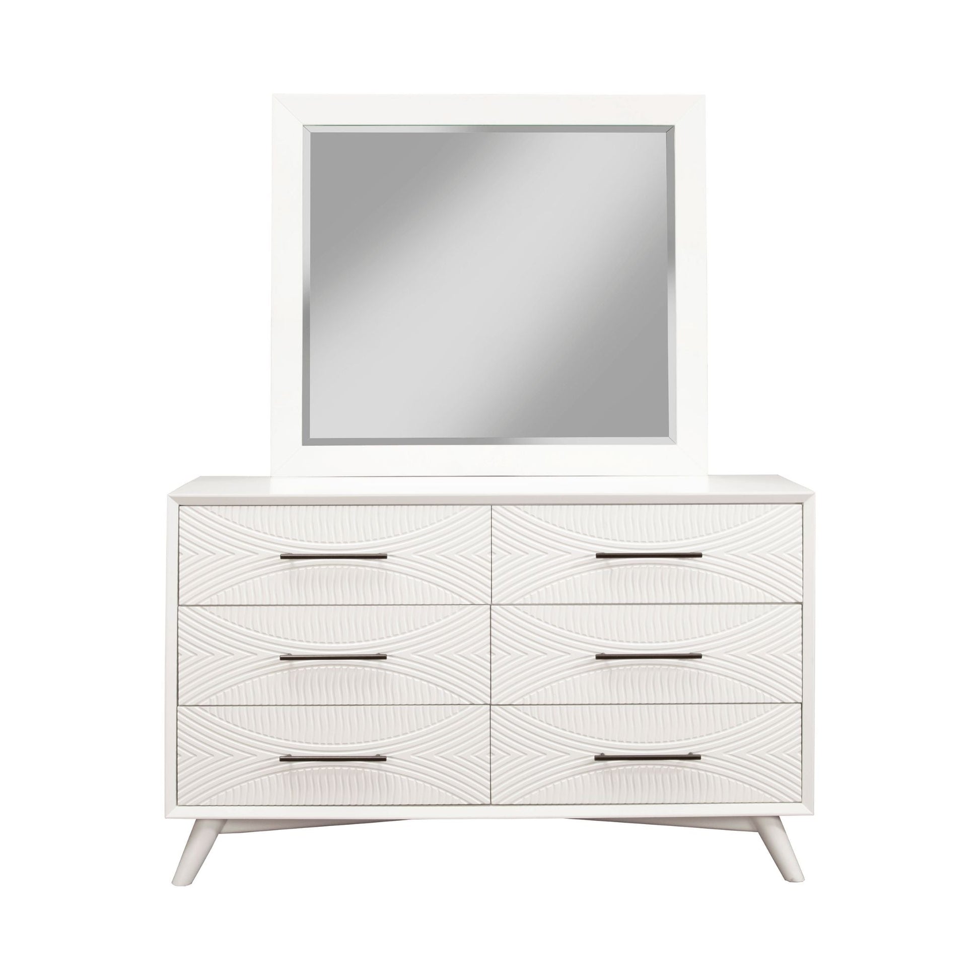 Classic White finish. Quality crafted with Mahogany Wood Solids & Veneer. Fully assembled. French & English Dovetail drawer construction. Felt lined top drawer(s). Ball bearing metal drawer glides. 6 drawers for storage. Alpine Furniture knows that certain things never go out of style. Their furniture products are designed and constructed with classic English and/or French dovetailing that provides a sturdy result and an unbeatable aesthetic. For over 20 years, Alpine has provided its customers with a variety of wood products for the bedroom, dining room, and living room. Each piece is designed to meet the highest-quality standards of design, durability, and dependability. Customer satisfaction is of the utmost importance to Alpine. They have altered their designs over the years based on customer input in order to attain excellence in all areas.