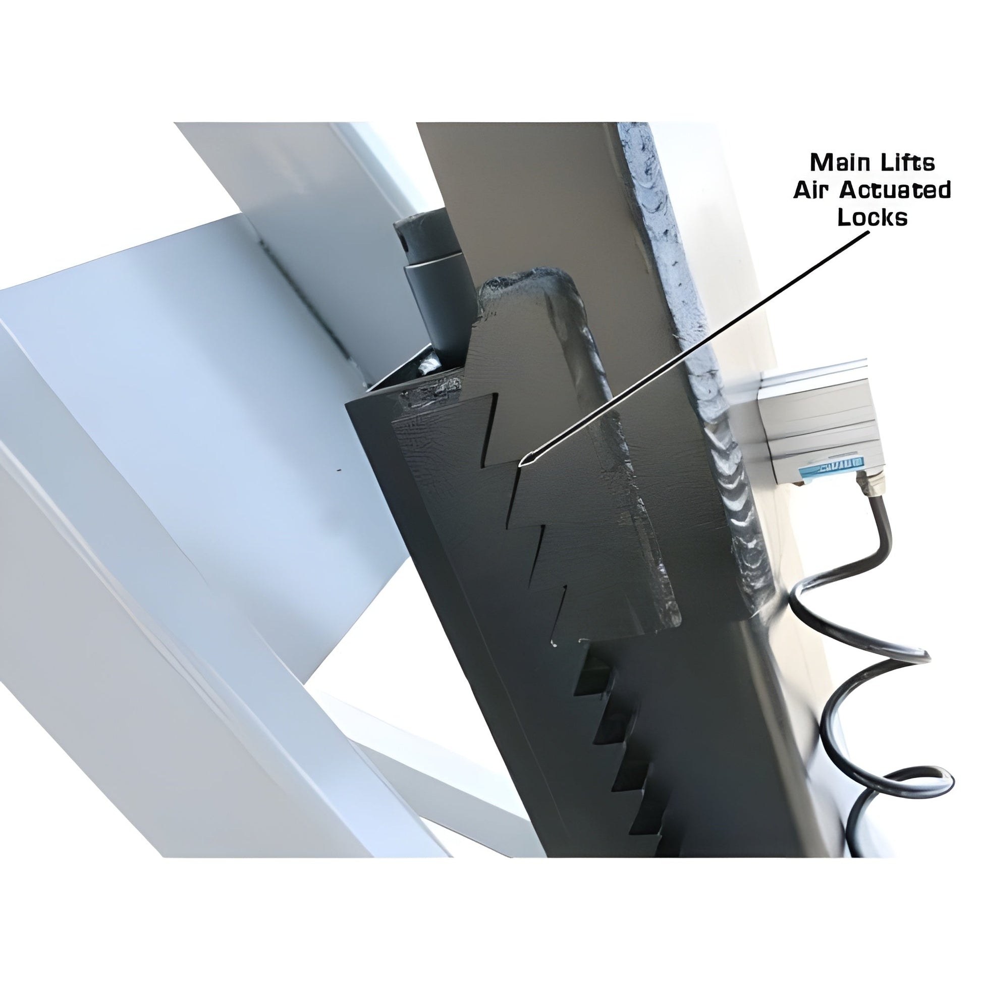A: Yes, it includes safety features such as automatic safety stops and a secure locking system to ensure safe vehicle lifting.