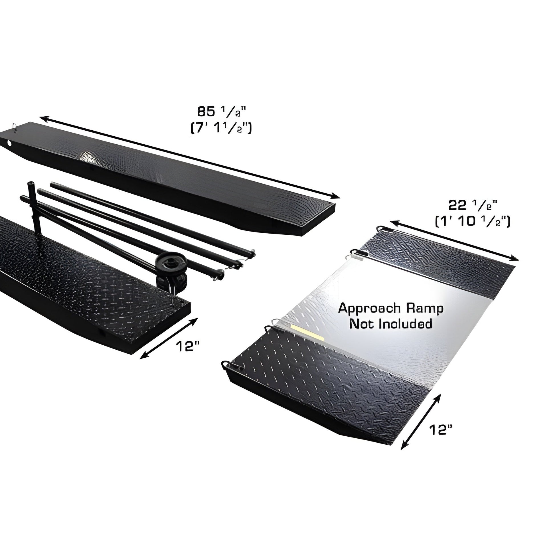 Side Extension Kit for ACL Motorcycle LiftThe Atlas ACL Cycle Lift Side Extension Kit includes two 12" wide side extensions, a two wheeled dolly, approach ramp extensions, three connector rods and clips.