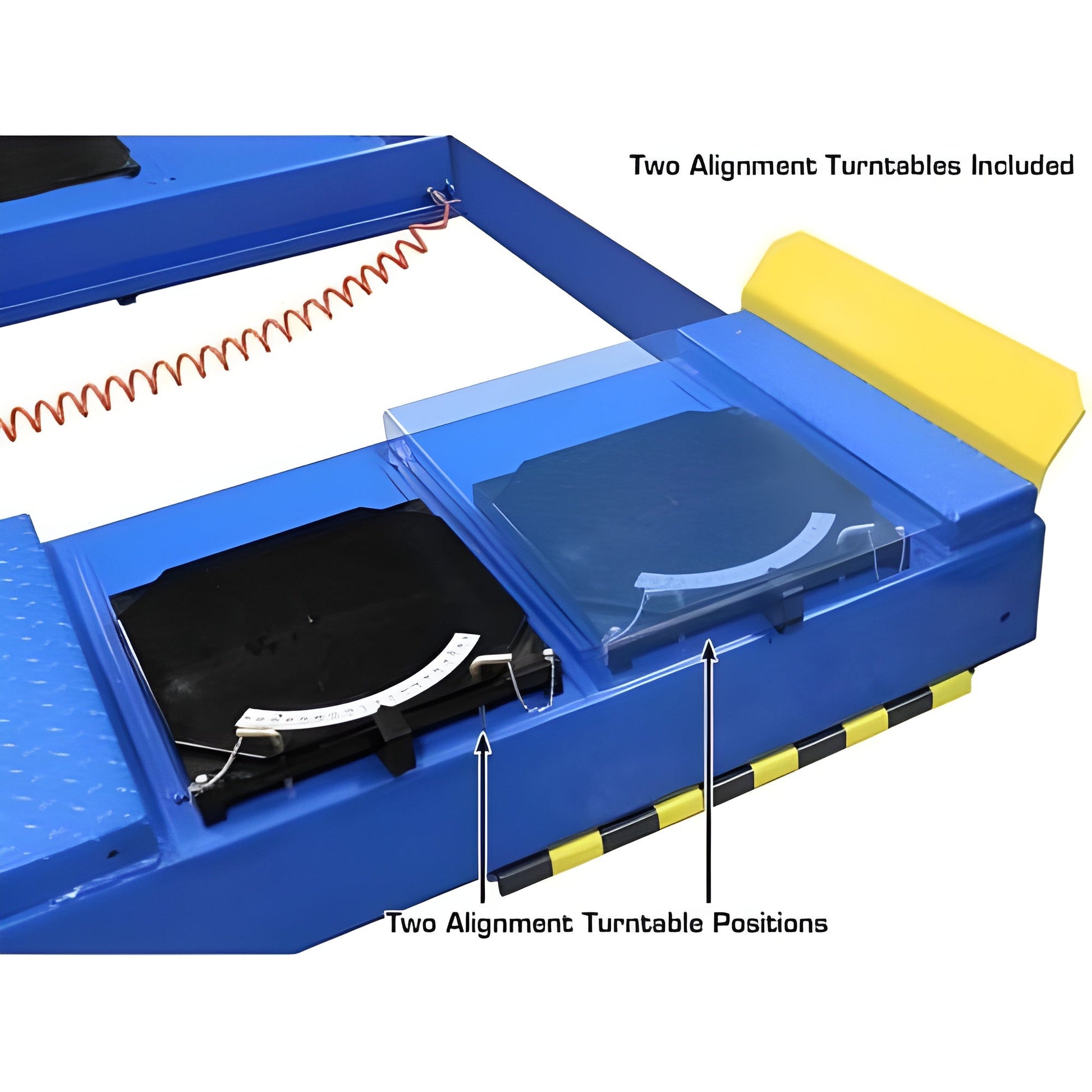 The Atlas PX16A 16,000 lb. capacity scissor alignment lift is the perfect choice for those service shops that need a space saving (narrow width) alignment lift to accommodate most all passenger cars up to heavy-duty long wheel base trucks and vans.The Atlas PX16A allows the operator to perform 4-wheel alignments for vehicles with wheel base lengths from 96 inches to 184 inches.The Atlas PX16A includes a set of turntables, built in slip-plates, and runway jack rails designed to accommodate optional rolling jacks (like the Atlas RJ8000BK). The lift is equipped with a semi enclosed air line kit routing system to accommodate the optional airline kit. This air line kit will provide air to the rolling jacks and prevent shop air hoses from cluttering the floor.