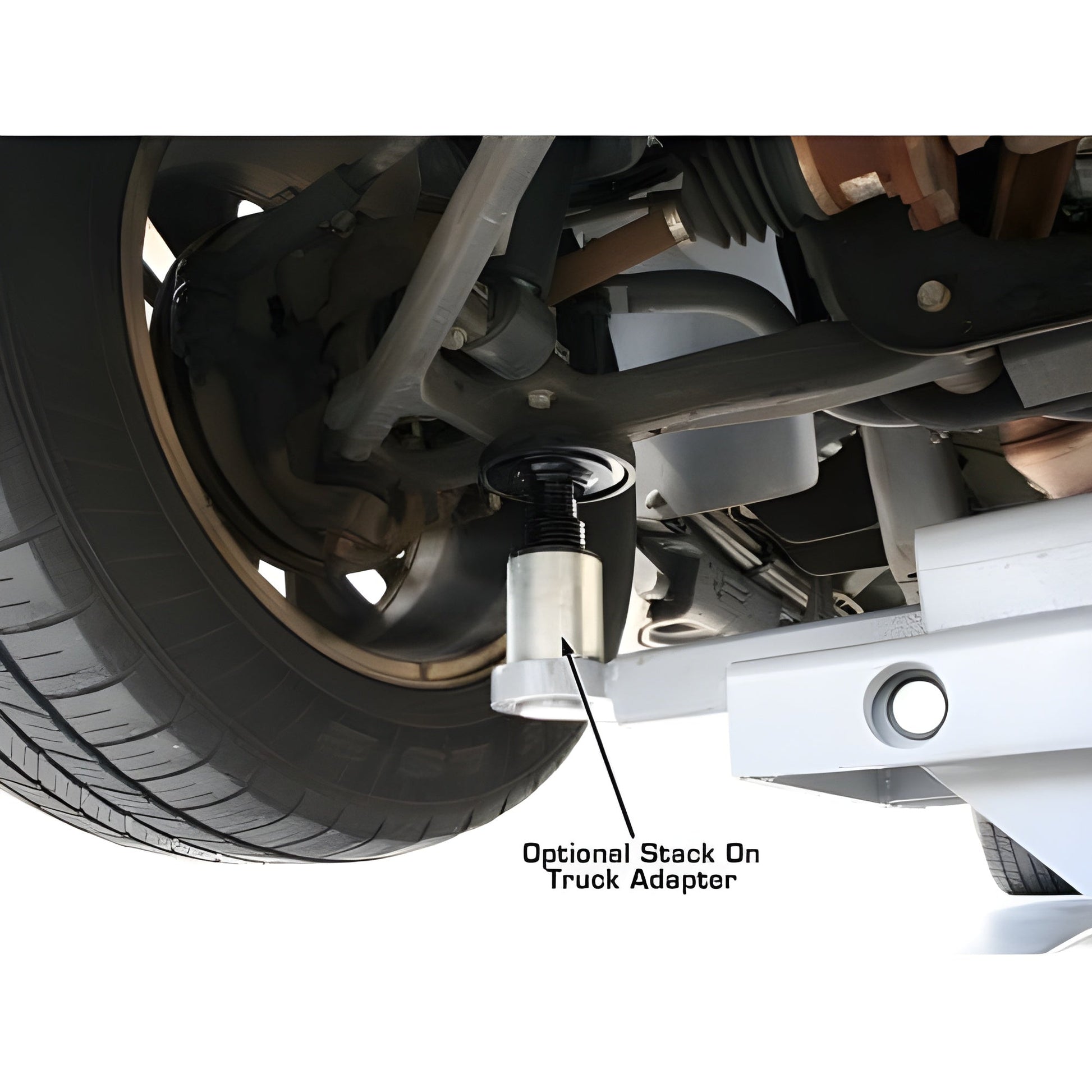 Atlas RJ-6 has telescoping arms that can be extended over the runways of a four post lift. The double screw lift pads at the end of these arms can be positioned under the lifting points that are located over the runways of that four post lift. This rolling jack is equipped with expandable rail supports which adjust to fit between the runways of many different four post above ground lifts. These supports have a unique roller system that allows the rolling hydraulic jack to glide easily under the entire length of the vehicle.The Atlas RJ-6 rolling bridge jack comes standard with a set of peg style truck adapters which increases the lifting height of the lift pads. These truck adapters will allow the RJ-6 to raise most pick up and larger trucks that will sit higher than the average passenger car. The RJ-6 rolling hydraulic jack features multiple solid locking positions that are used when the vehicle is to be suspended above the runways. When the locking positions are engaged, the hydraulic pressure from the lifting cylinder of the jack is eliminated. (These locks act much like a pair of jack stands after you lift a vehicle off the ground with a service jack).IMPORTANT: The Atlas RJ-6 is designed and engineered to operate on βdeliveredβ air pressure of between 70-115 PSI. If you exceed 115 PSI, you may damage your jack.