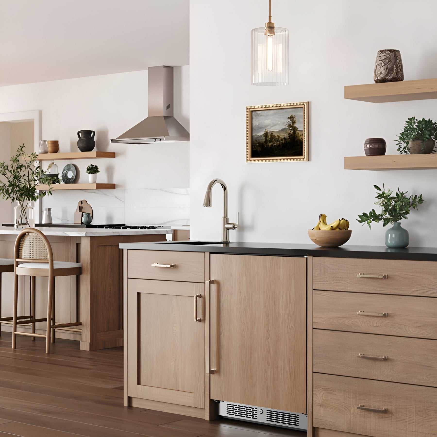 A: A 140-can capacity beverage center with energy-efficient performance, LED lighting, and a sleek design. Ideal for built-in or freestanding use, it keeps drinks perfectly chilled while enhancing any home bar or kitchen.