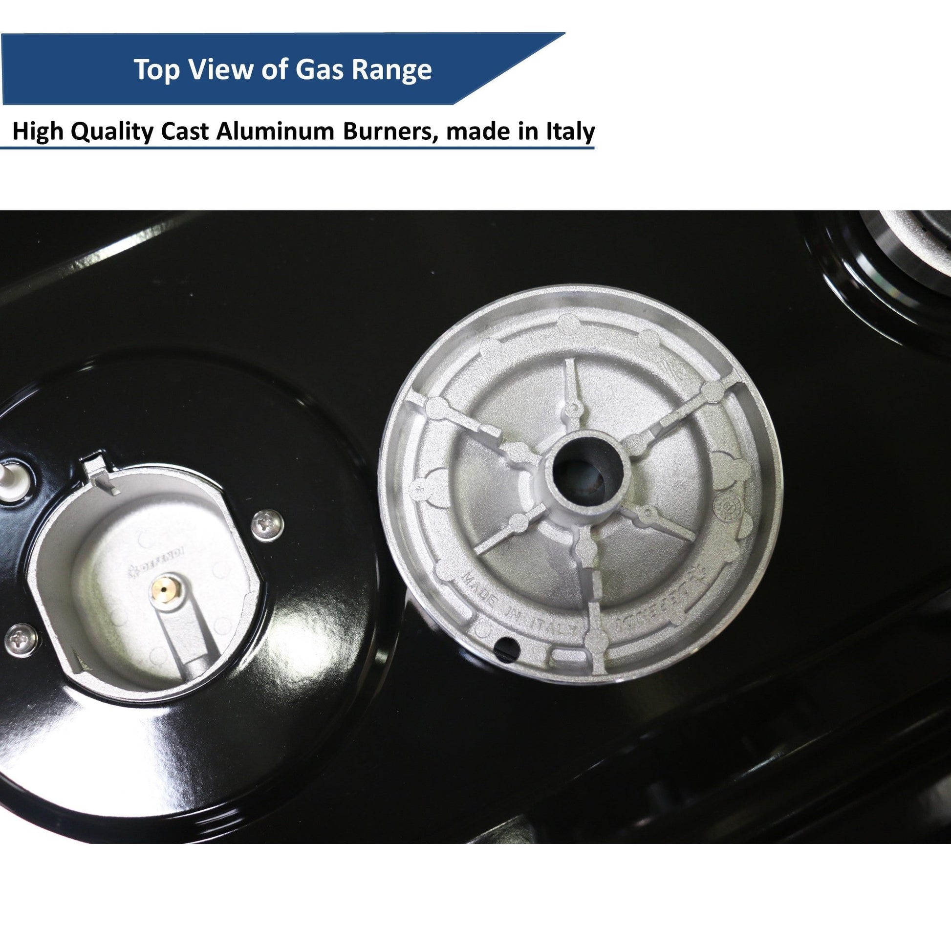[Heavy Duty Construction] - Constructed of stainless steel, heavy duty cast iron grates for heat retention and distribution. High quality cast aluminum burners, made in Italy. Gas regulator is included.