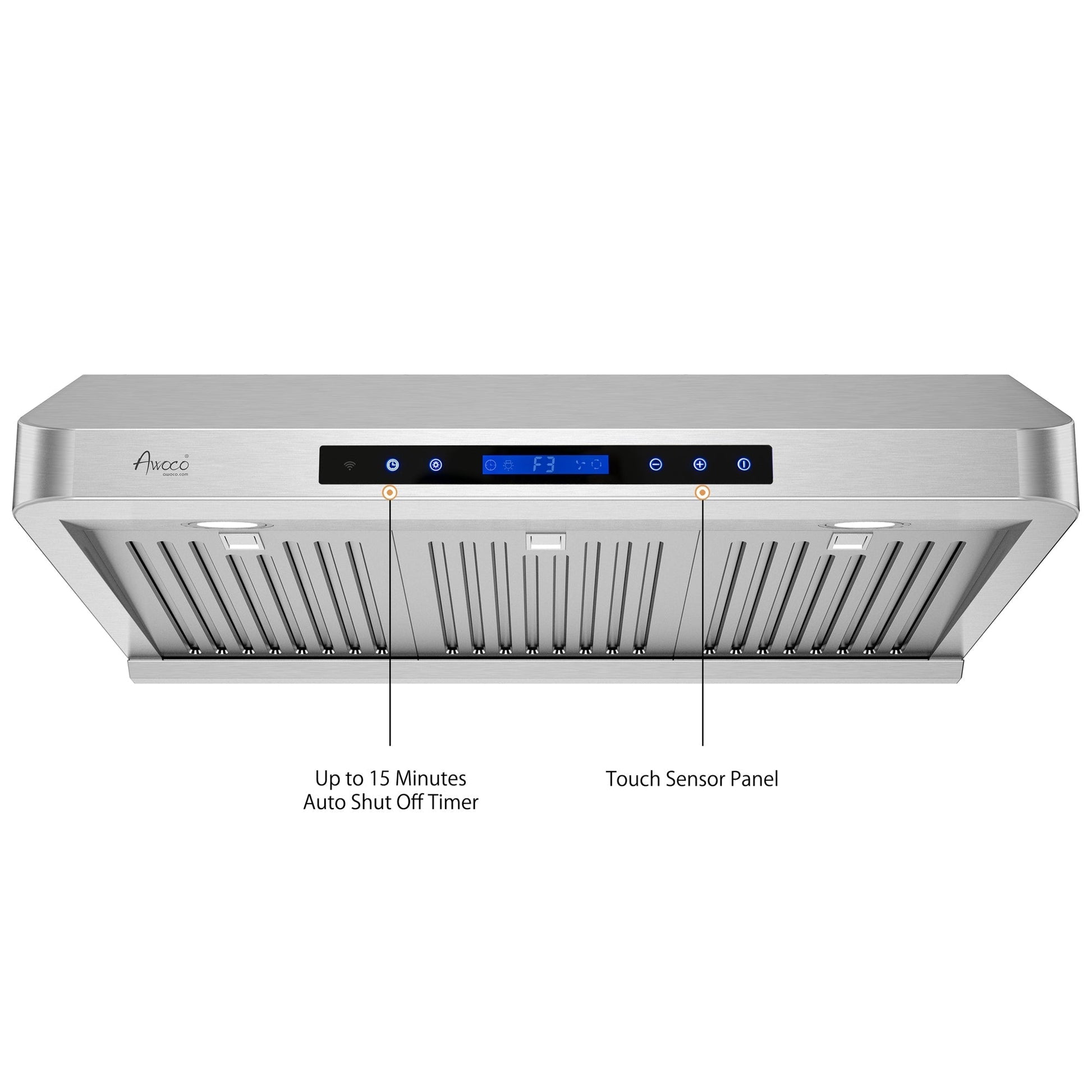 Awoco RH-S10-S Under Cabinet Supreme 7” High Stainless Steel Range Hood, 4 Speeds, 8” Round Top Vent, 1000CFM, with Remote Control - RH-S10-30S