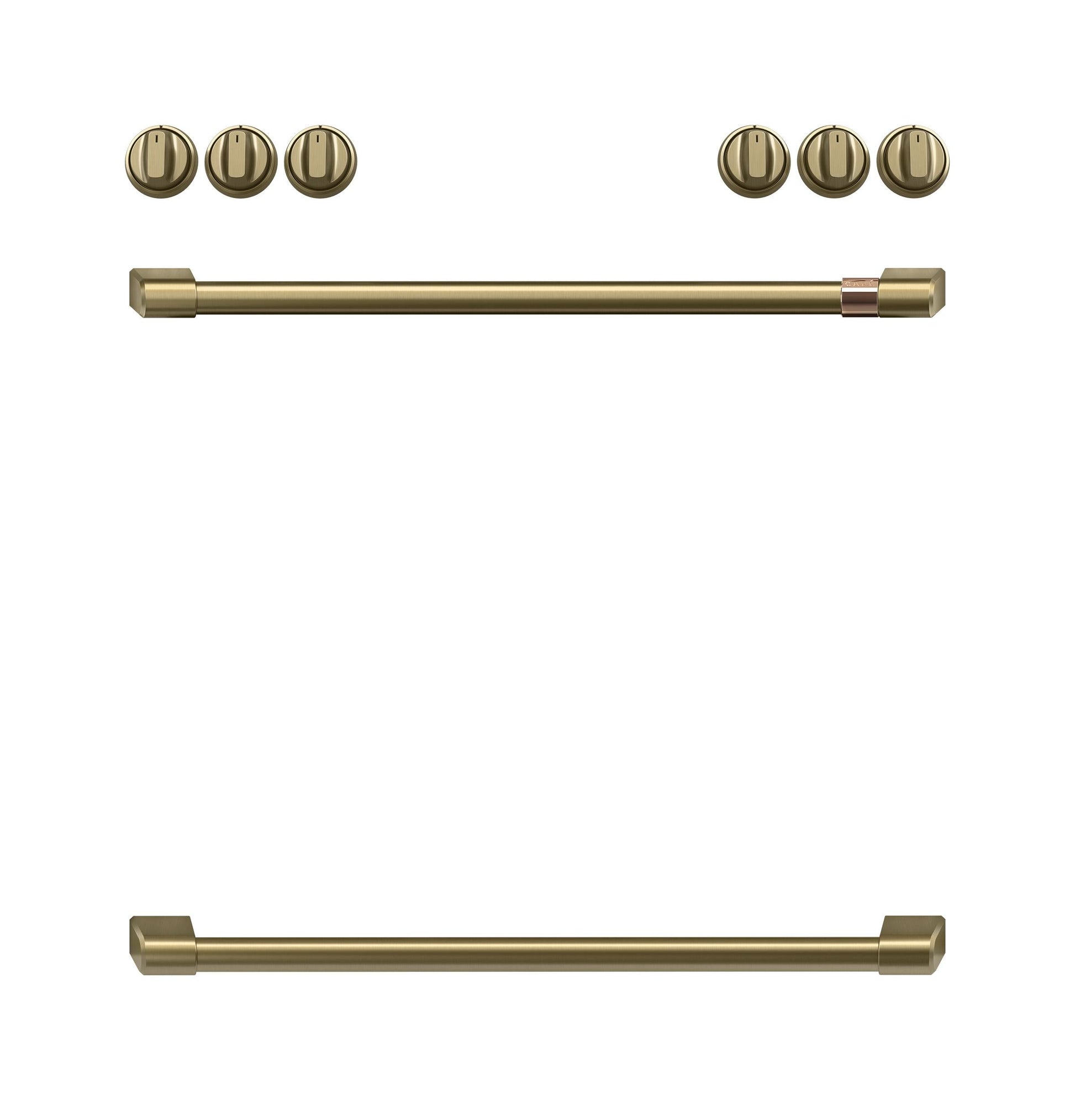 The Café CXFCGHKPMCG Handle Kit in Brushed Brass delivers a luxurious upgrade for range hardware.