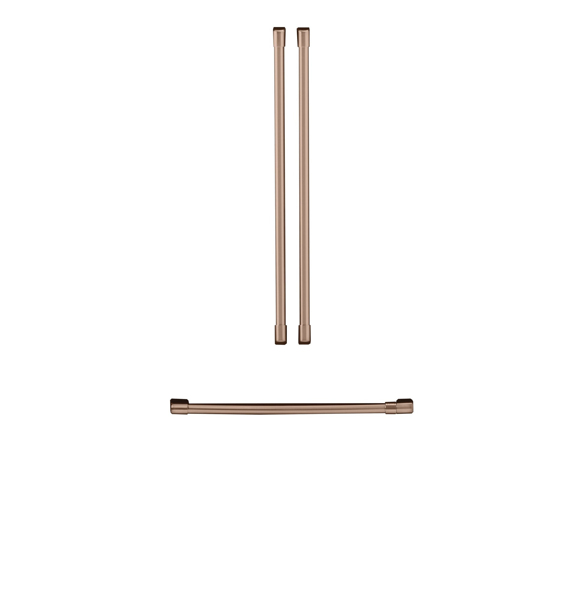 The Café CXMA3H3PNCU Handle Kit in Brushed Copper offers a warm, stylish upgrade for refrigerator hardware.