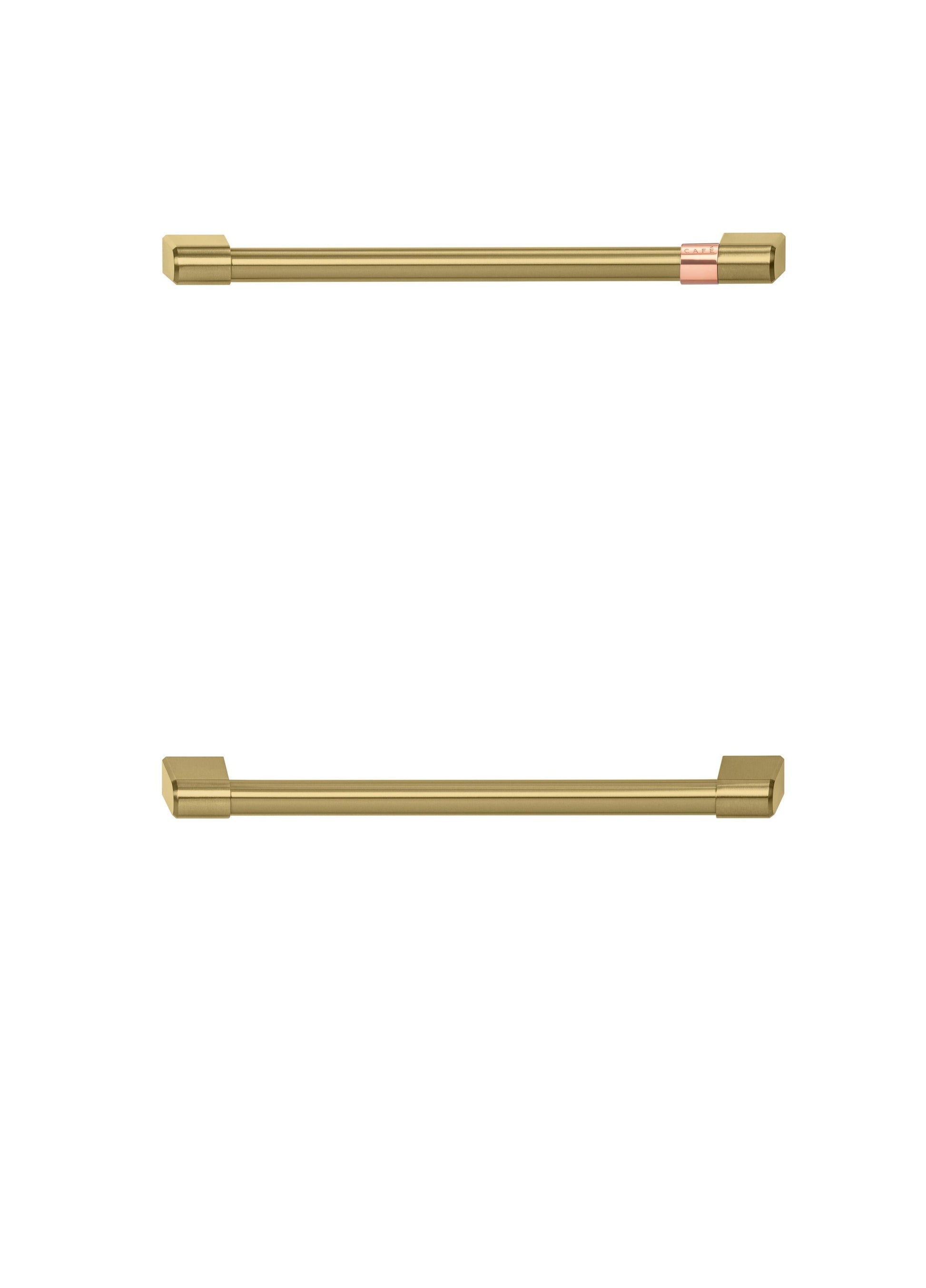 The Café CXQD2H2PNCG Handle Kit in Brushed Brass brings a timeless, elegant accent to your kitchen appliances.