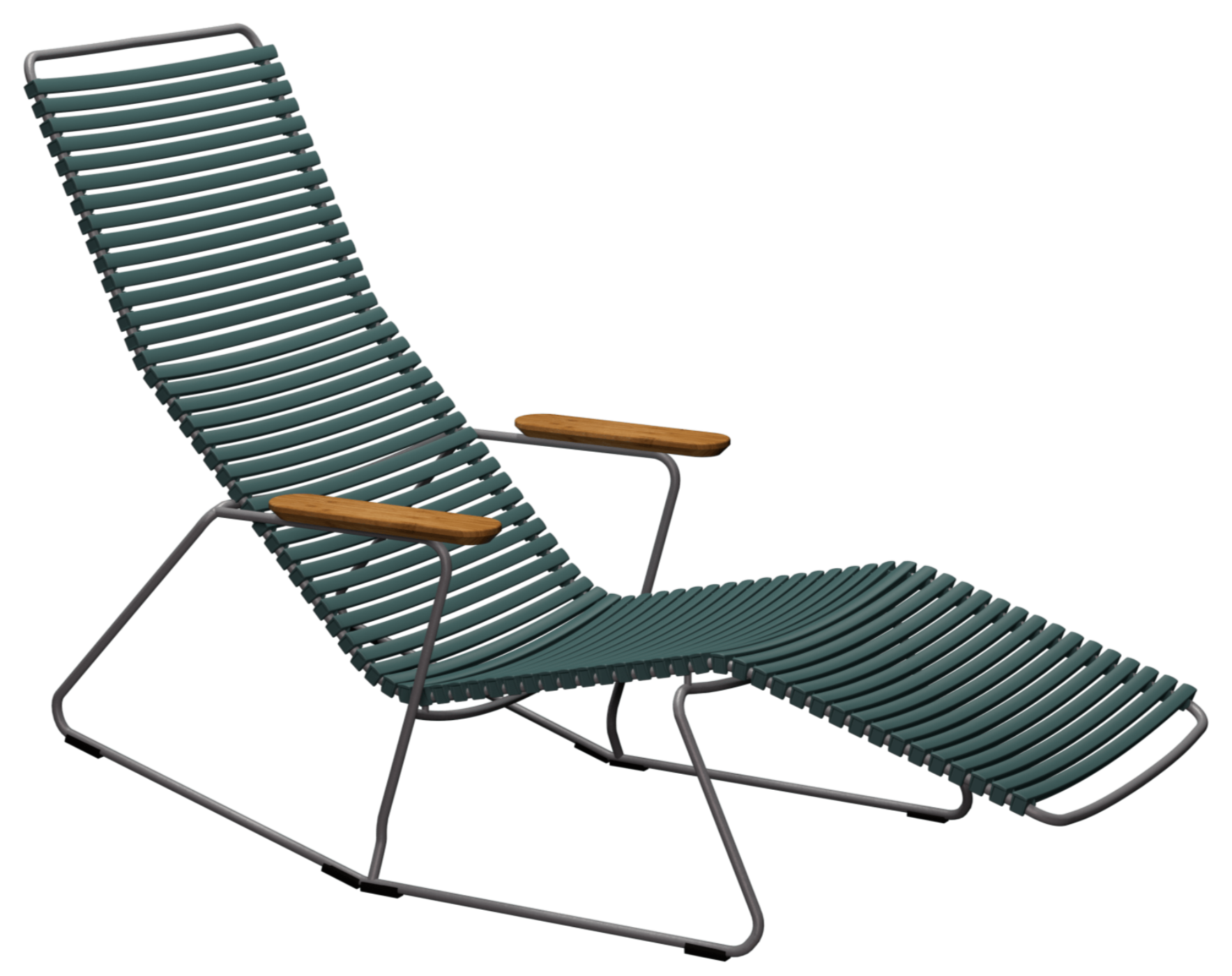 This Houe CLICK Sunrocker lounge chair combines the best of the CLICK Position Chair and the Outdoor Rocking Chair. It has a sturdy plastic seat, steel frame, and bamboo armrests for durability. Additionally, the click-into-place slats let you mix and match with other outdoor furniture, like teak outdoor dining tables. Pair it with an EDGE tray table to keep essentials close. The CLICK Sunrocker blends modern furniture style and function.