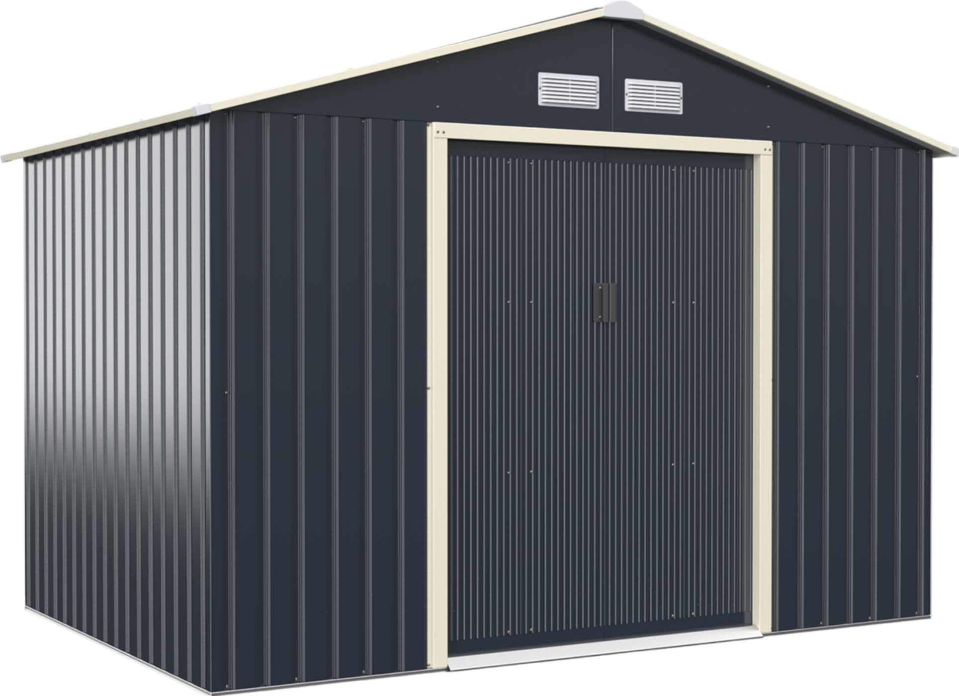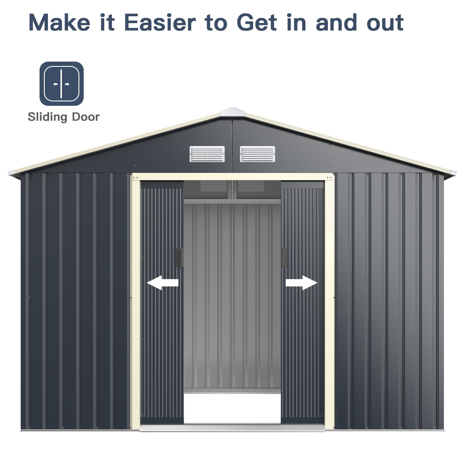 Add extra storage space to your backyard with this spacious metal storage shed. The sturdy steel structure features 4 air vents to provide a dry and ventilated environment for stored items. The sloped roof allows rain to flow down quickly and avoids stagnant water. This walk-in shed creates 51.9 sq. ft of space, making it ideal for use as a tool shed, pet house, or storage room.