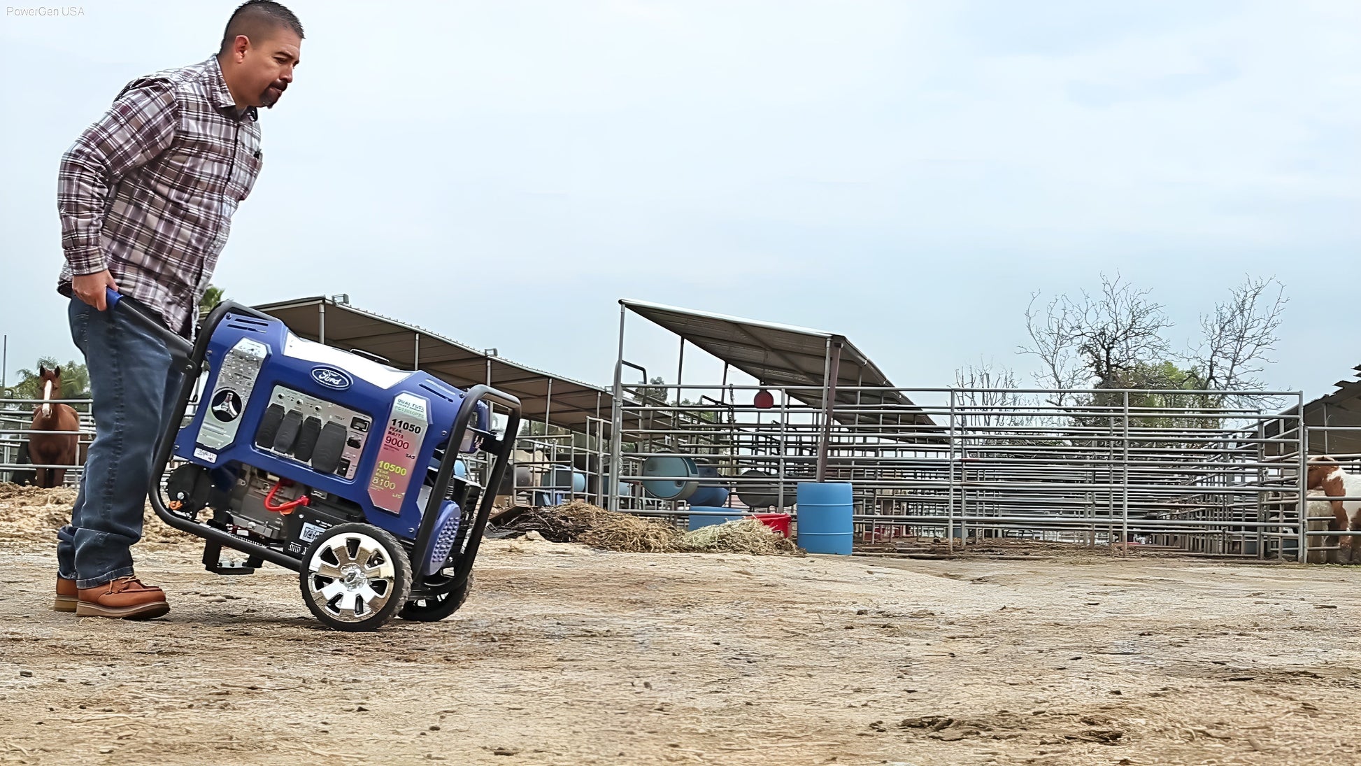 The Ford FG11050PBE Dual Fuel Portable Generator has the power you need to weather the storm and the “Built Ford Tough” durability you can rely on. Its 457cc 4-Stroke, OHV engine can be run on either gasoline or liquid propane, and patented Switch & Go technology allows you to seamlessly switch between fuel sources while in operation. The rugged M-Frame design with drop-down handles and 10" Never-flat wheels provide optimal portability, so you can store and maneuver the unit with ease. Whether you need the robust 11050 watts of power this Ford 11050W generator offers for your home essentials during a power outage or the convenience of a Ford portable generator at a jobsite, this model is a perfect choice. The versatility of the Ford PowerBoost generator also ensures that you have reliable energy wherever it's required.