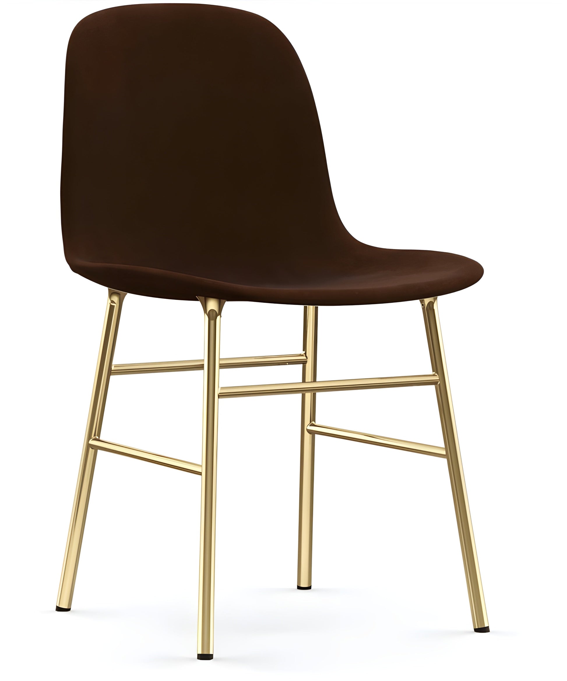 The Normann Form Chair Fully Upholstered - Brass - Set of 2 is designed to blend elegance and comfort seamlessly. Featuring brass-plated steel legs and soft upholstery, this chair provides a sophisticated look for any space. Whether in your living room, dining area, or home office, the Form Chair brings modern style and practical comfort to any setting.