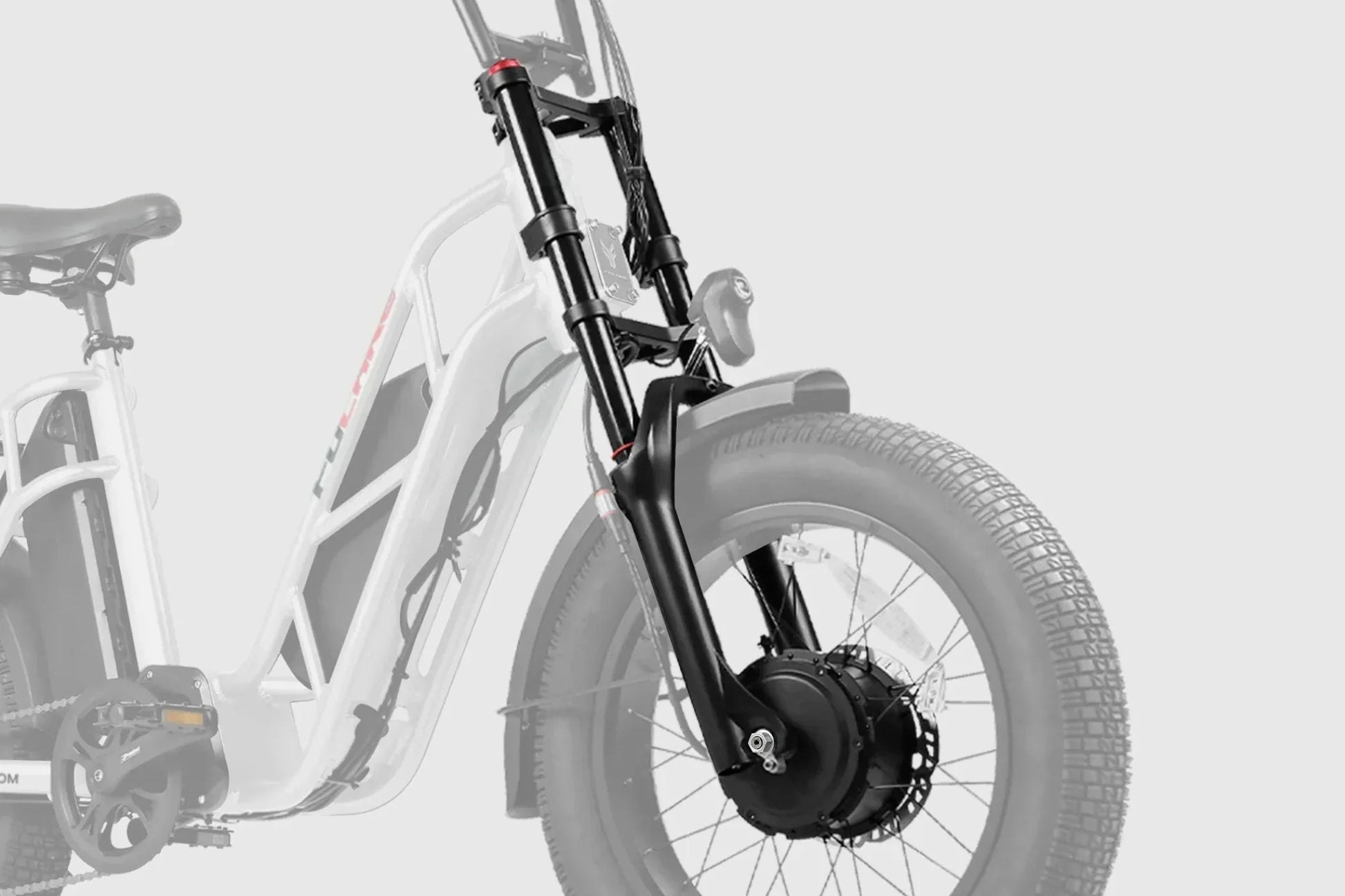 Experience power and convenience with the Fucare Gemini Sport Dual Motor Step-Thru Ebike. Designed for riders who demand both performance and accessibility, this e-bike features dual motors for enhanced speed, torque, and all-terrain capability. The step-thru frame ensures easy mounting and dismounting, making it perfect for riders of all experience levels. With fat tires and a full suspension system, the Gemini Sport delivers a smooth, stable ride on pavement, trails, sand, or snow. Its long-range battery provides extended adventure time, while the rugged construction ensures durability in any environment. Whether you're commuting or exploring the outdoors, this e-bike is built for effortless power and comfort.