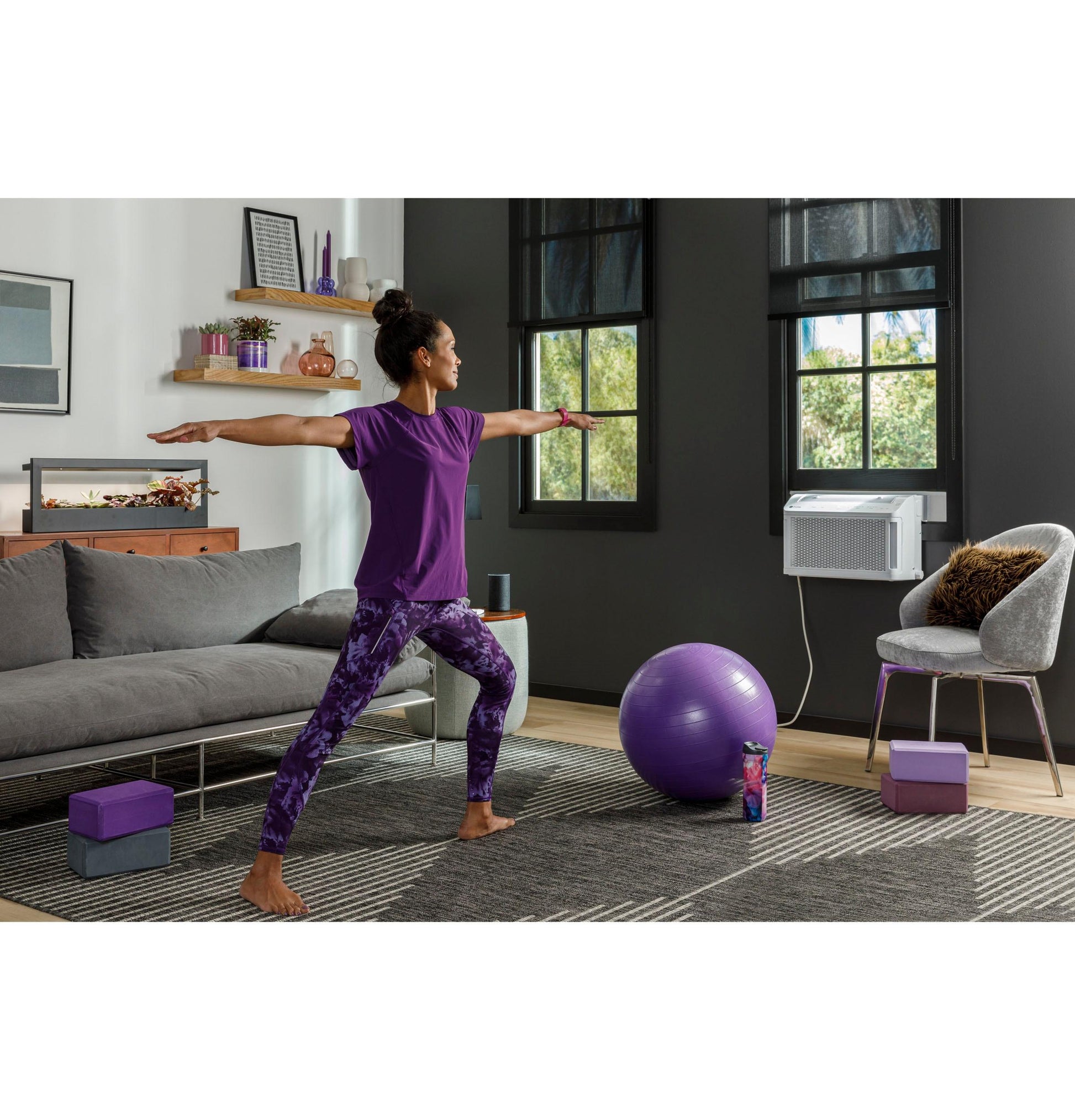 (B)Full Window View(/B)(BR)This Energy Star certified window air conditioner is designed to maintain the full view through the window, allowing more natural light into the room. Fits windows 20"-40" wide, 13" minimum window opening height, 10" minimum height from floor.(BR)(BR)(B)Inverter Technology(/B)(BR)Adaptive air conditioner inverter technology operates at smooth, varying levels, reducing noise and maxmizing energy efficiency.(BR)(BR)(B)Ultra Quiet(/B)(BR)This quiet air conditioner reaches sounds as low as 40 dB, underlining GE Profile's rating as the Quietest Window AC Brand. (Based on avg sound ratings by brand of 5K-24K BTU Window AC from publicly available info, compared to 74% of the product in the US WAC category per Traqline 9/21)(BR)(BR)(B)Industry Exclusive Flex-Depth(/B)(BR)The industry exclusive flex-depth design is an expandable chase-way that accommodates walls between 4.5" to 13.75" thick. The product comes in the closed position and can be expanded to custom fit your windowsill depth(BR)(BR)(B)Operational Window(/B)(BR)The ClearView design allows you to open and close the window freely with the unit installed, providing flexibility to let the fresh air in on a nice day(BR)(BR)(B)Built-in WiFi(/B)(BR)Use the SmartHQ app to control and monitor this WiFi enabled smart air conditioner from anywhere, giving you connected peace of mind.(BR)(BR)(B)Voice Control(/B)(BR)Use voice commands to control the unit after connecting it to a smart speaker like Amazon Alexa or Google Assistant.(BR)(BR)(B)Energy Reporting(/B)(BR)Monitor air conditioner energy consumption with reports that show how much you've used, so you can maximize savings and enjoy a truly connected performance.(BR)(BR)(B)Geolocation(/B)(BR)Geofence technology pinpoints your smartphone location then automatically adjusts the smart air conditioner settings for when you're home.(BR)(BR)(B)Maximum Comfort Cool(/B)(BR)Four cooling settings and fan speeds provide total flexibility with optimal home comfort and air conditioner efficiency.(BR)(BR)(B)Easy Installation(/B)(BR)This unit sits below the window sill and is easy and safe to install in a double hung window with included installation kit.(BR)(BR)(B)Filter Reminder(/B)(BR)Get a filter change reminder when the filter needs cleaning, so you can keep the unit performing at its best.(BR)(BR)(B)Capacitive Touch with Remote(/B)(BR)The capacitive touch screen controls are flush with the air conditioner and require less pressure to operate; or simply use the included remote for effortless control(BR)(BR)(B)Cools Large Rooms(/B)(BR)12,200 BTU cooling capacity offers maximum comfort in rooms up to 550 square feet.(BR)(BR)(B)Built-in Pump(/B)(BR)An advanced built-in pump system collects the condensation from the indoor side then automatically transports the water through the unit to empty efficiently outside(BR)(BR)