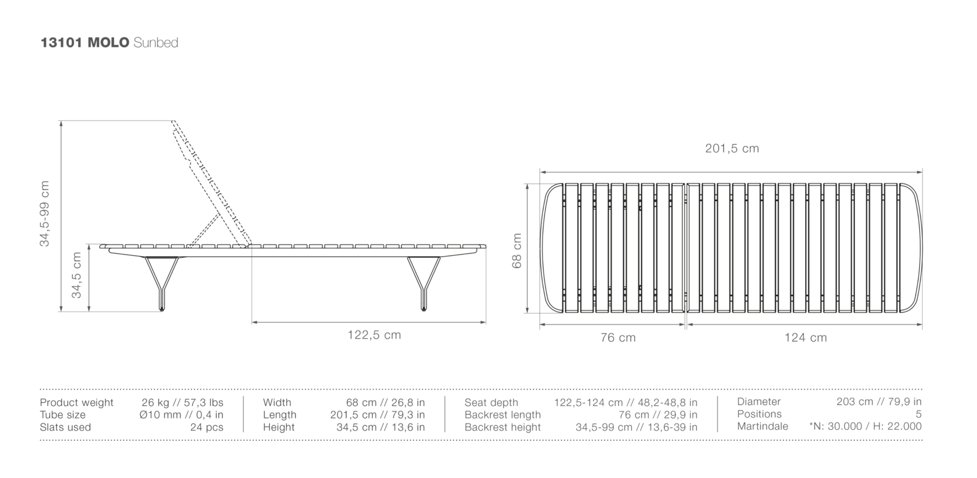 Built with weather-resistant materials, the Houe MOLO Sunbed performs as beautifully as it looks. The bamboo slats are treated for durability, and the powder-coated steel frame stands up to the elements. Add an optional Sunbrella cushion for even more comfort—it dries quickly and resists fading. Whether placed next to your outdoor dining table or beside modern outdoor lounge chairs, this sunbed blends functionality with relaxed elegance.
