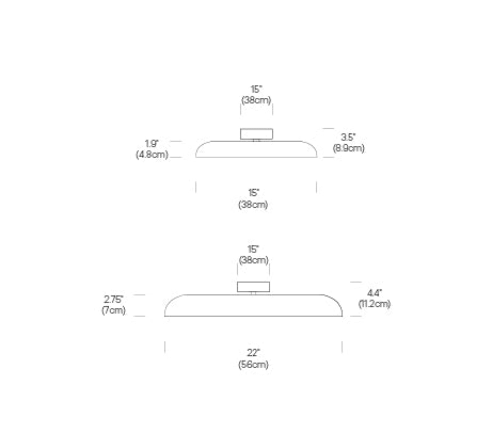 A: The fixture measures 15" in diameter and delivers up to 700 lumens of warm, diffused light (2700K or 3000K options).