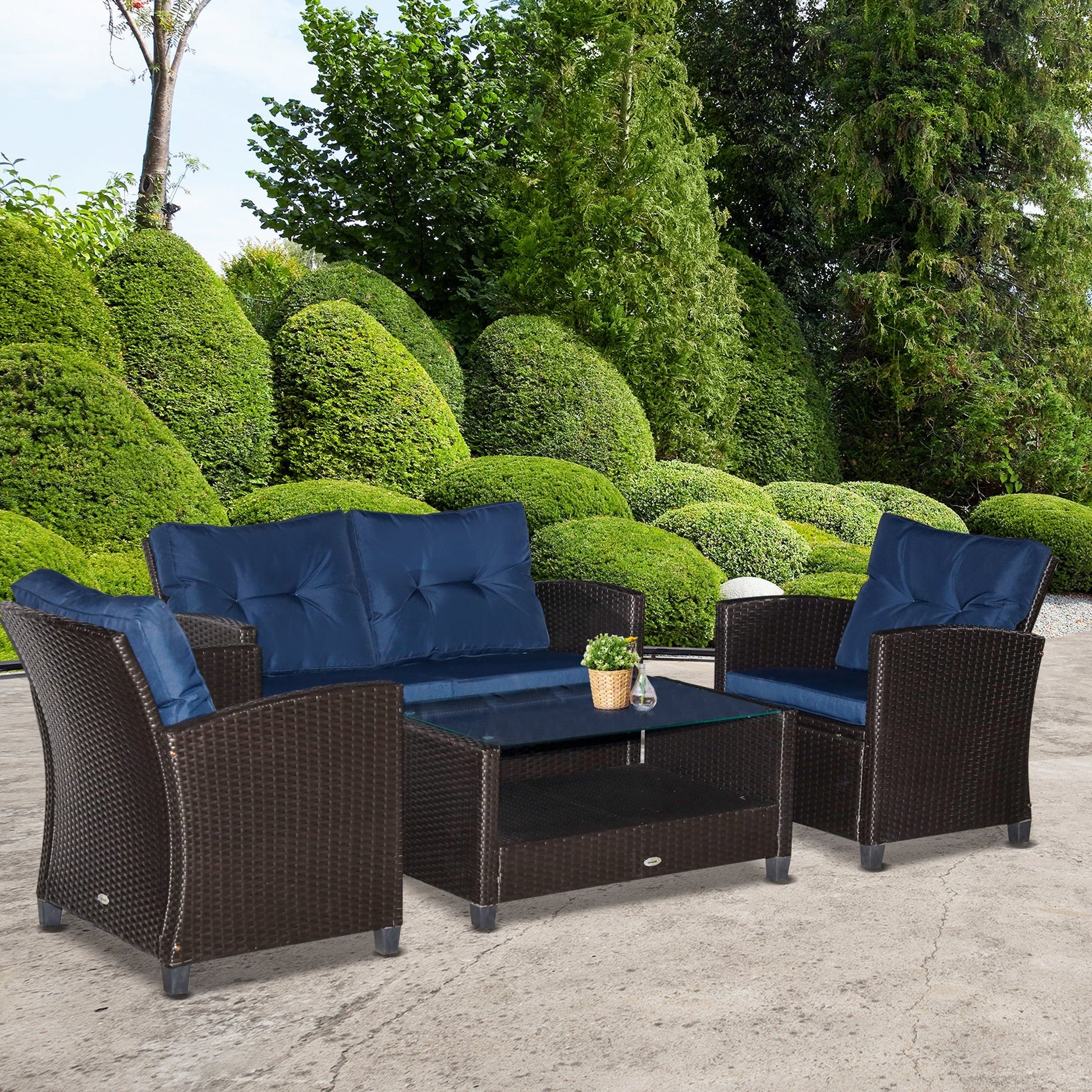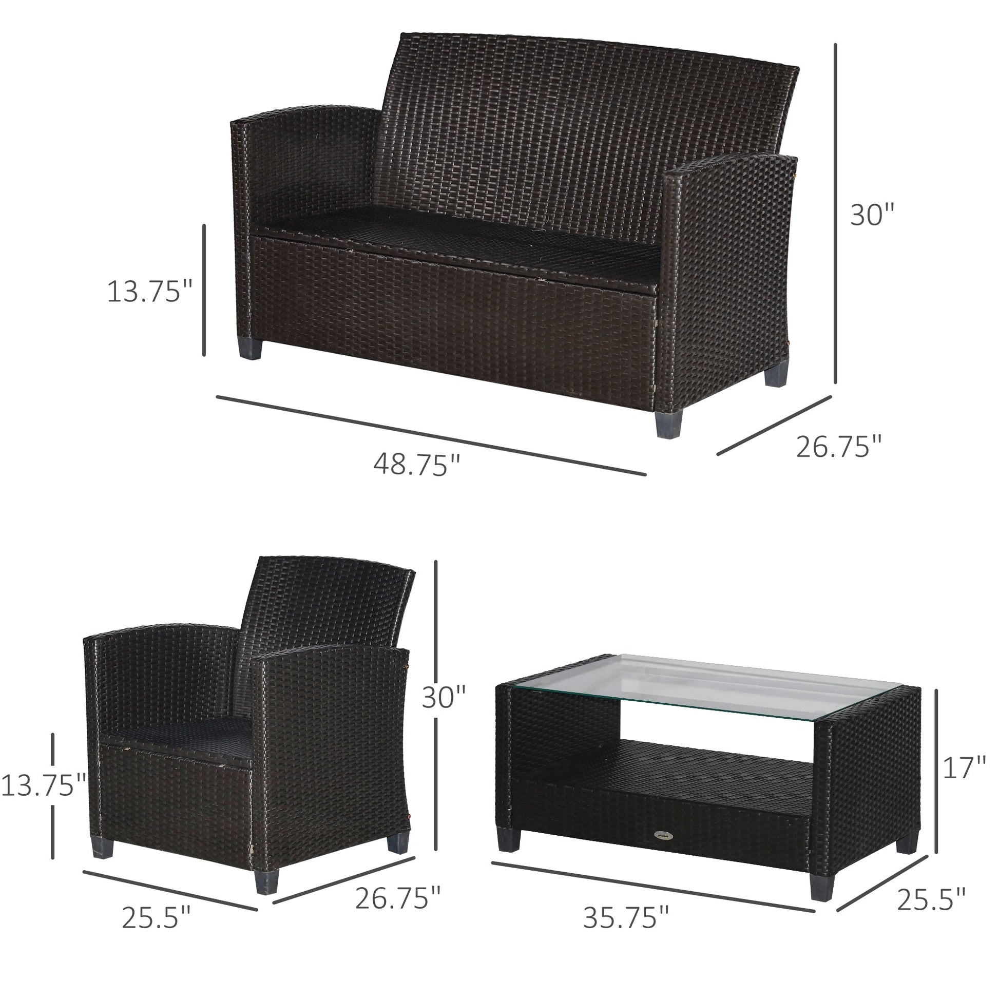 Durable PE Rattan Set: The Outsunny 4-Piece Patio Set features weather-resistant PE wicker and a sturdy frame for long-lasting outdoor use.