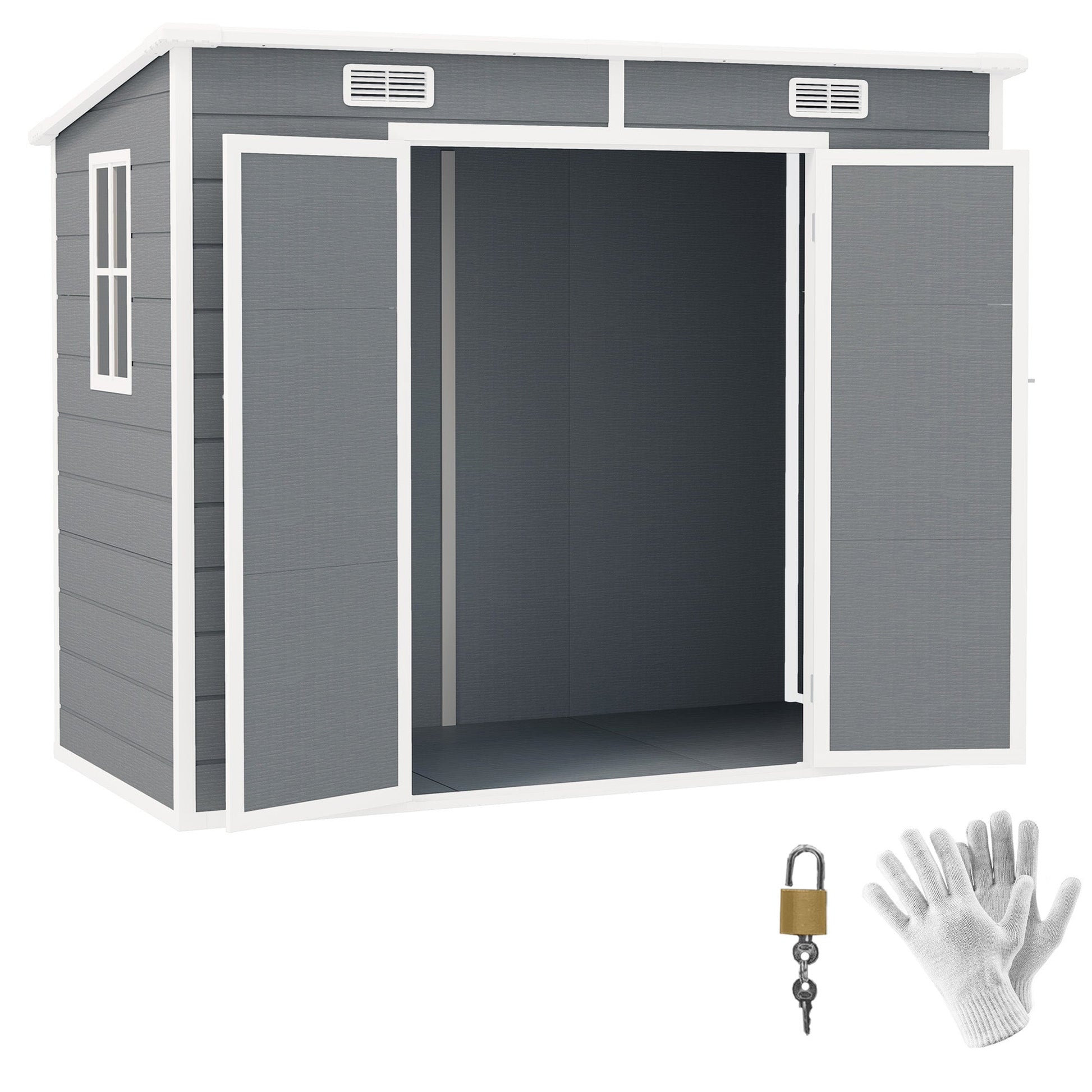 The Outsunny EverBase 8' x 4' Outdoor Storage Shed (84H-156V00GY) is a smart, space-efficient storage solution for backyards, patios, and gardens.