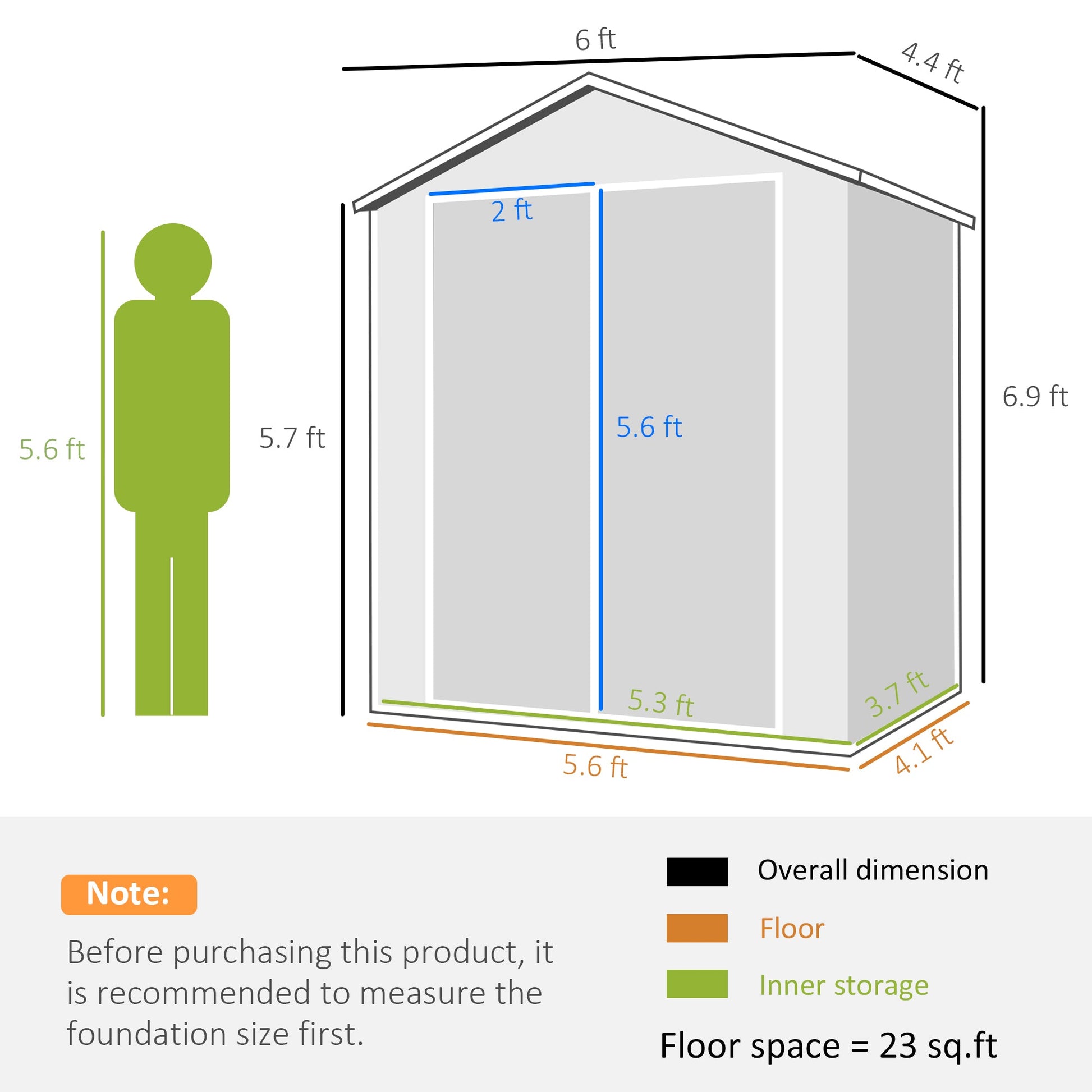 Compact Outdoor Storage: The Outsunny 6' x 4.5' Plastic Shed provides a convenient solution for storing garden tools, pool supplies, bikes, and lawn equipment.