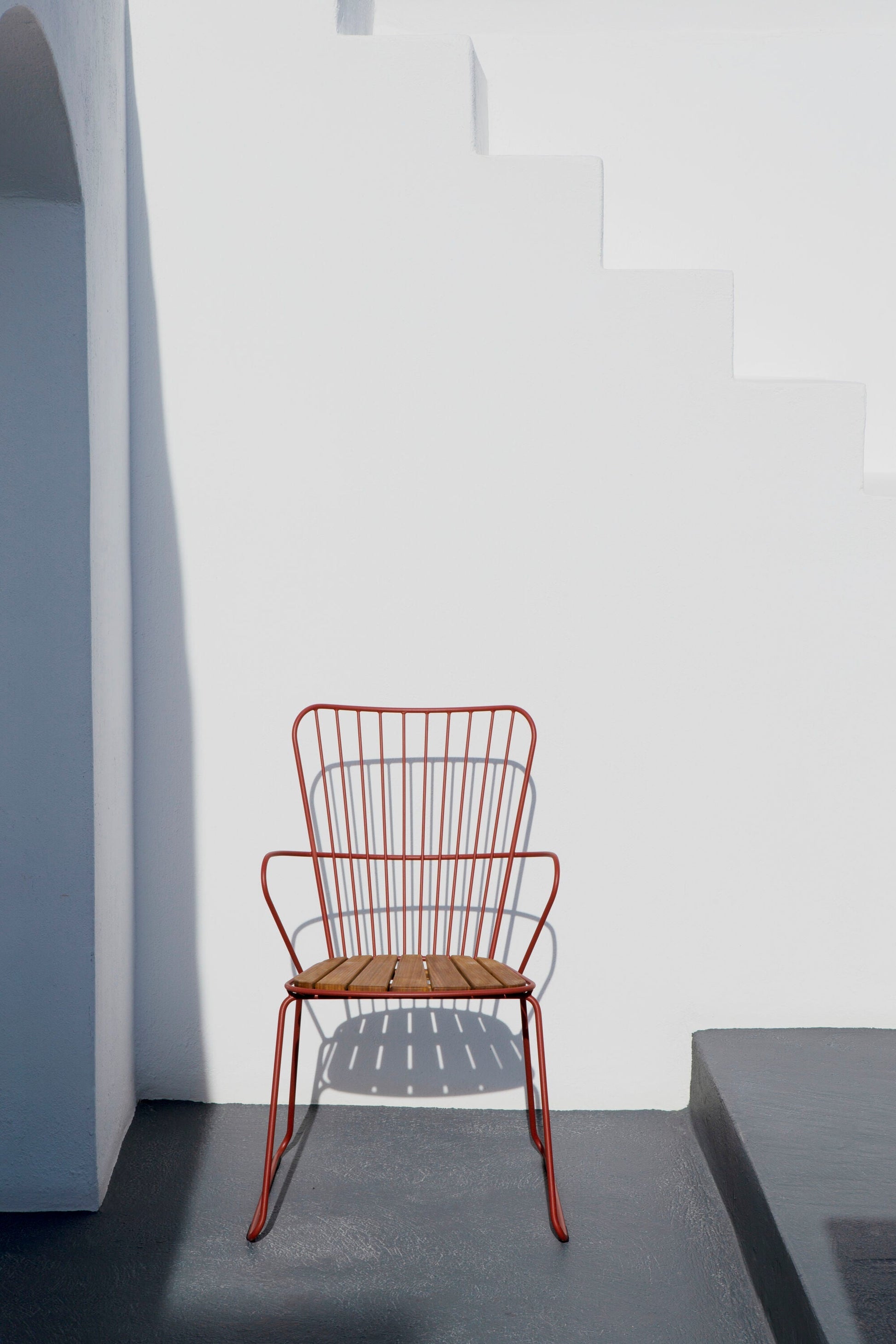 The HOUE PAON Outdoor Dining Chair brings modern elegance to your outdoor dining space. Its sleek powder-coated steel frame contrasts beautifully with the warmth of curved bamboo slats. This combination offers durability and natural style. Whether paired with a teak outdoor dining table or bistro table and chairs, the PAON Outdoor Dining Chair enhances patios, gardens, and decks with its clean lines and refined Scandinavian design.