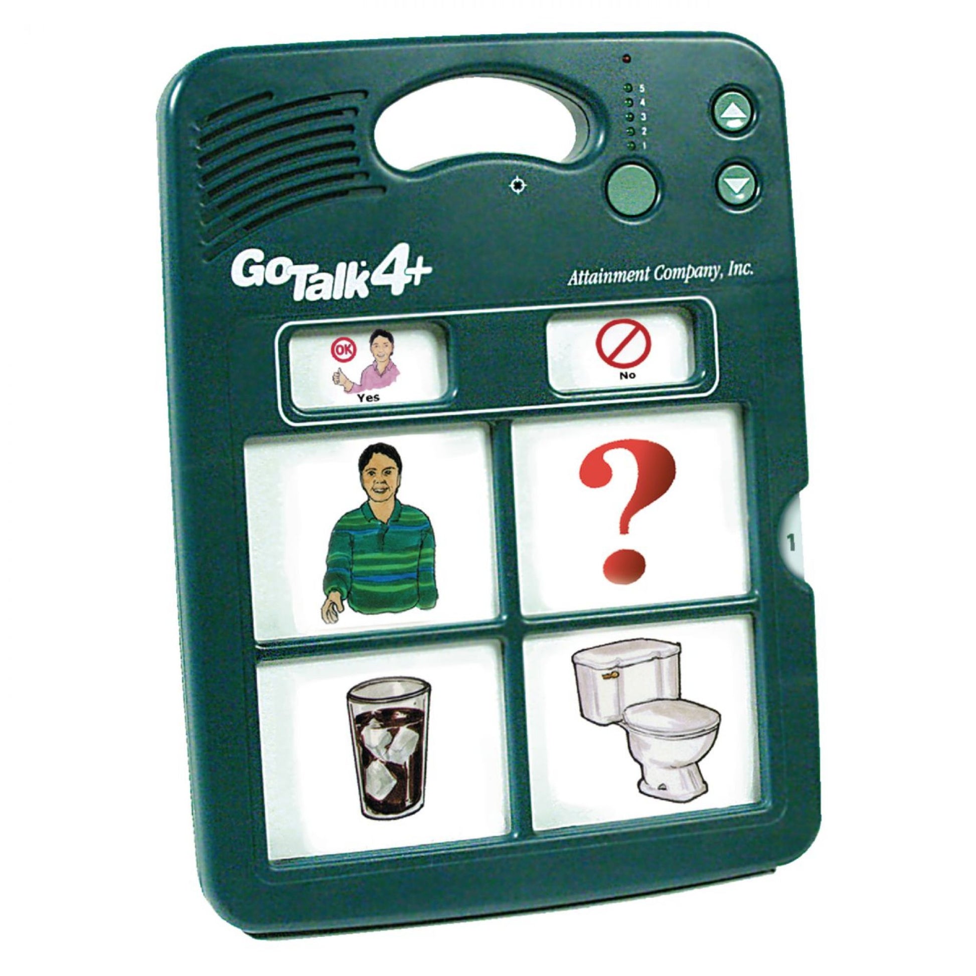 The Go Talk 4+ assistive speech and communication device is the perfect product for individuals who need assistance with their speech and need to give basic level commands. The device provides up to 20 messages and 5 recording levels. Each key on the device is large and easy to see and read. The Go Talk 4+ has an overall recording time of 4.56 minutes with an easy to use sequential recording option. Two AA batteries included.