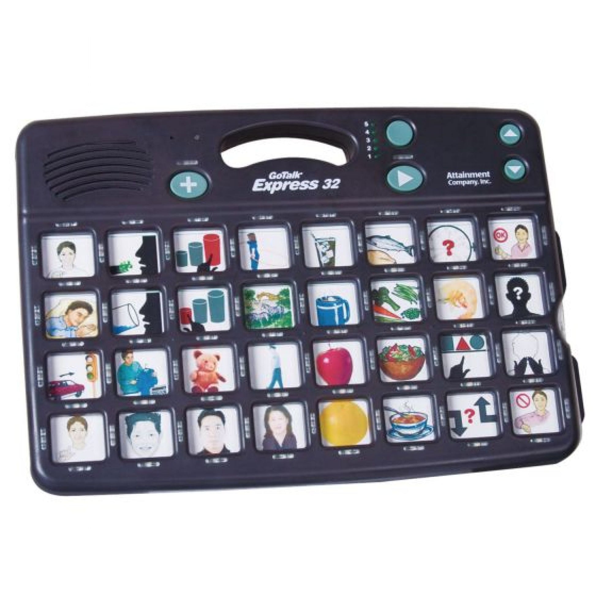 The GoTalk 32+ features five levels that offer the speaker a capacity of 163 messages. This product includes a quick record option, message keys that record 7 seconds and core vocabulary keys that record 17 seconds. This product also features volume control, built-in handle and keyboard and a level lock and record lock. Optional GoTalk Overlay Software is available to quickly create great-looking, personalized overlays. Excellent for personal and professional use.