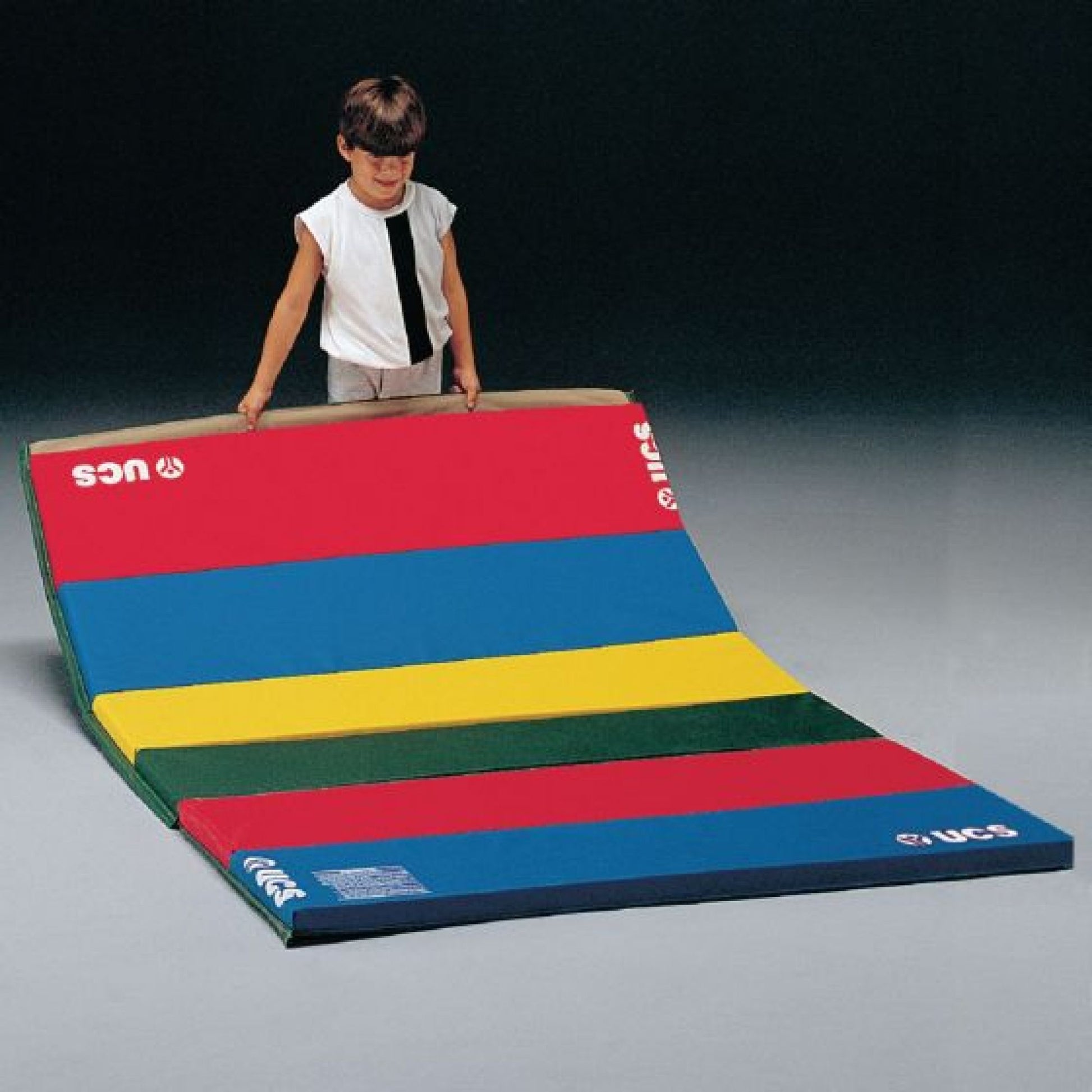 The Rainbow Mat folds into 2-foot sections with a 2" hook and loop strip along the edge to connect multiple mats. The polyethylene foam is firm and rigid, yet light, portable, and foldable. The multi-color 21-oz vinyl-coated nylon is sewn with a superior-strength nylon thread to make the mat durable and rugged.