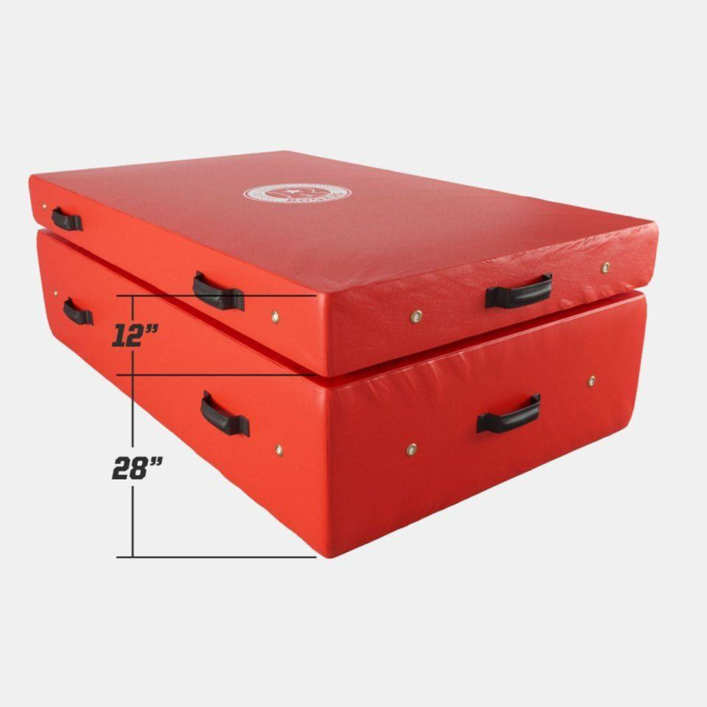 Weight: 145 lbs Height: 12" or 28" Width: 6’ Length: 10’ - Cover made of 18 oz vinyl. - Cut foam core. - Handles are made of seat belt webbing with an enclosed foam insert for added comfort.