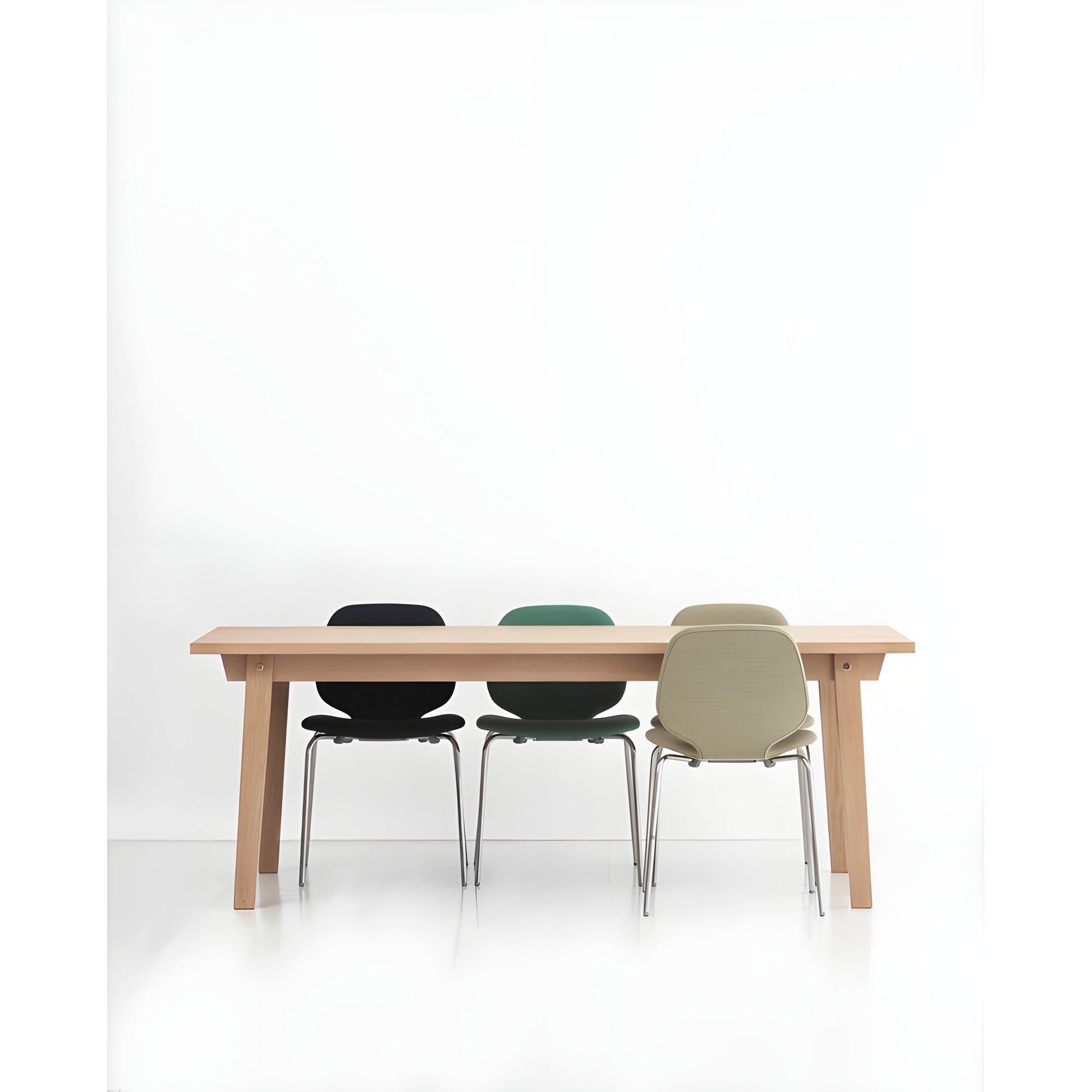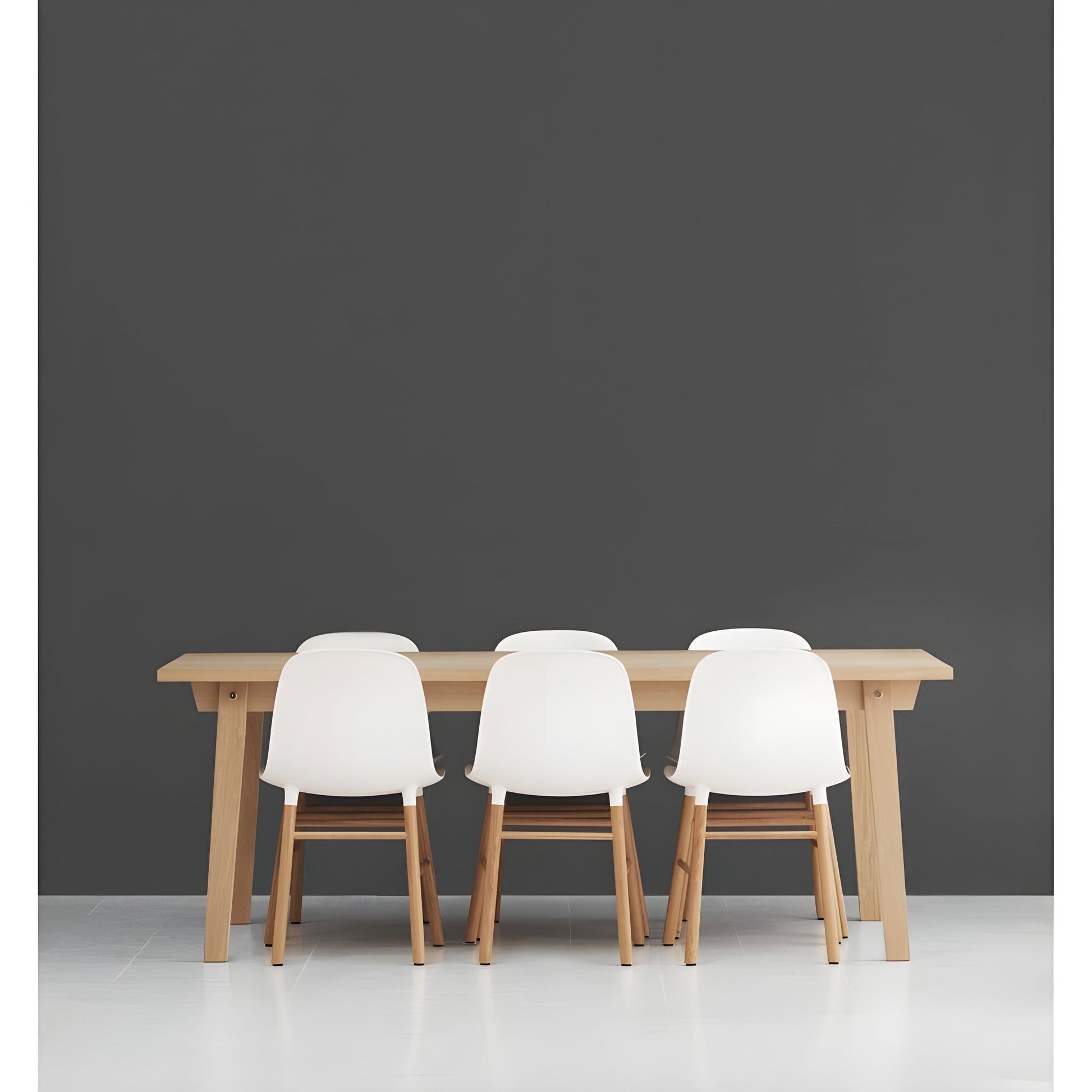 The Slice Table by Normann Copenhagen is a timeless combination of natural materials and minimalist design. Made from solid oak with a matte lacquer finish, it showcases the wood's natural beauty while ensuring durability. The plank-style tabletop adds warmth, making it an inviting centerpiece for dining spaces, home offices, or restaurants. Its clean lines and classic look allow it to fit seamlessly with Scandinavian furniture and modern interiors.