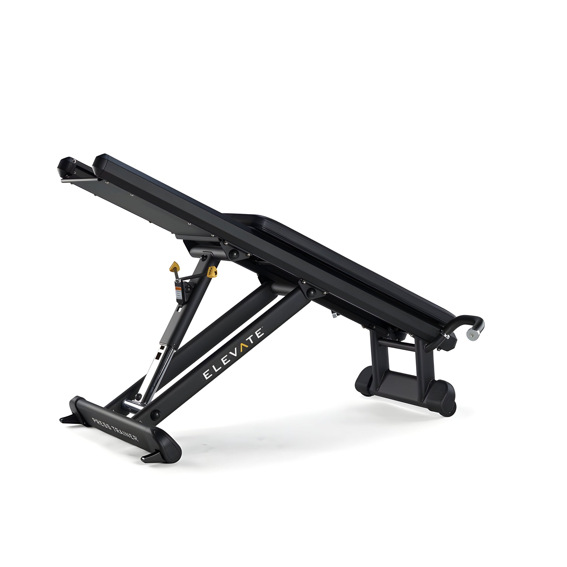 The ELEVATE Press is a commercial-grade shoulder press machine that redefines how shoulder presses are performed. It positions users in an inverted stance, alleviating pressure on the lower back and reducing spinal compression. With seven adjustable levels, users can select a percentage of their bodyweight for resistance. The unique closed-chain design minimizes shoulder impingement, a common issue with traditional shoulder press equipment, while stabilizing the shoulder girdle for safer, more effective upper body strengthening. Additionally, the machine features a mechanism for performing decline push-ups.