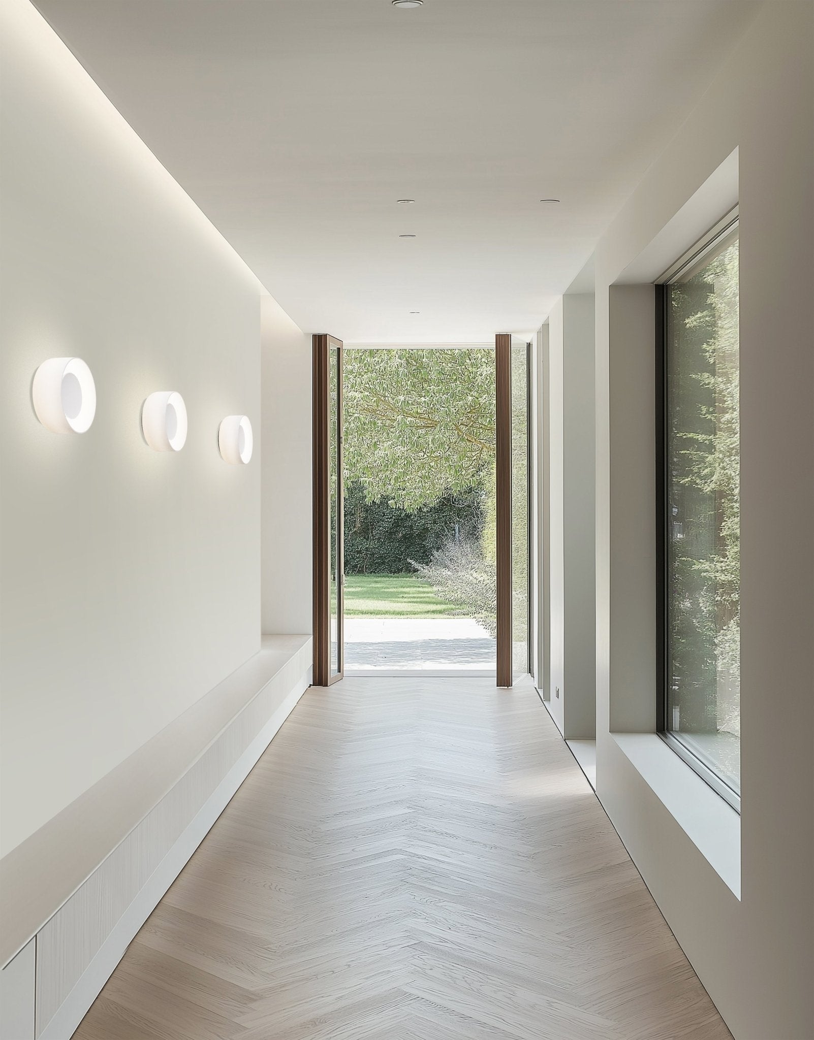 A: Its sleek, minimalist silhouette and high-quality materials create a contemporary statement while delivering soft, even light.